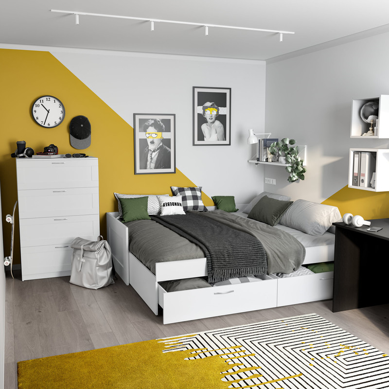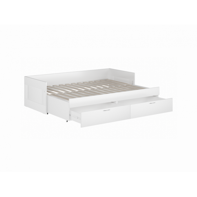 Кровать СИРИУС двухспальная раздвижная с двумя выдвижными ящиками для хранения, с ортопедическим основанием Лурой, 2044х870х575, цвет Белый. Спальное место 80/160х200. Изготовлена из кашированного ДСП толщиной 22 мм. Гарантийный срок для жилых помещений 18 месяцев, для общественных помещений - 12 месяцев.
