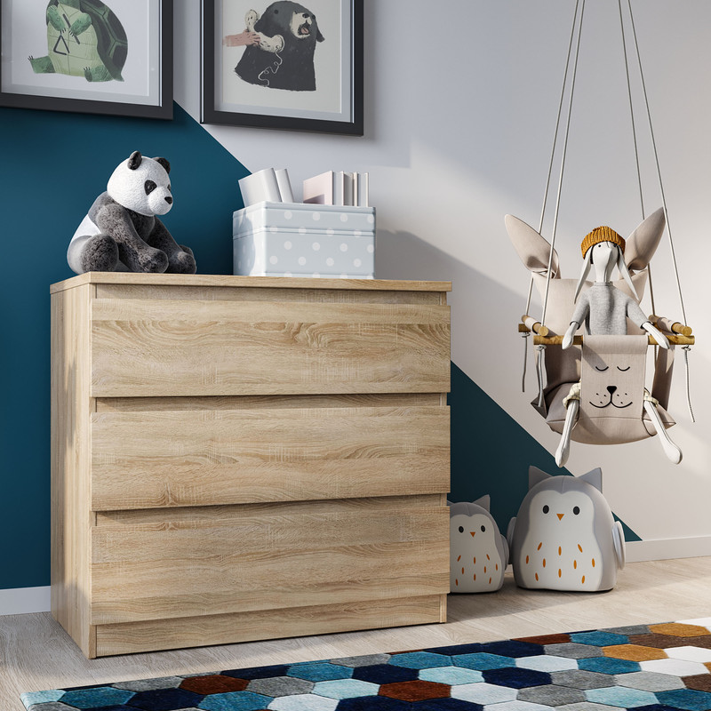 Комод МАЛЬТА с тремя выдвижными ящиками, 803х480х764, цвет Дуб Сонома. Крепится к стене. Гарантийный срок для жилых помещений 24 месяца, для общественных помещений - 18 месяцев.