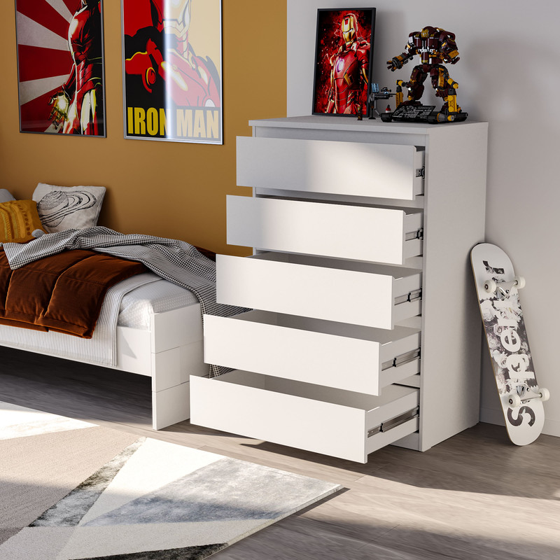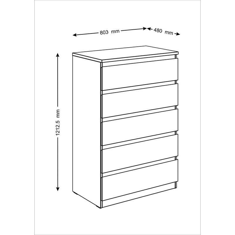 Комод МАЛЬТА с пятью выдвижными ящиками, 803х480х1212, цвет Белый. Крепится к стене. Гарантийный срок для жилых помещений 24 месяца, для общественных помещений - 18 месяцев.