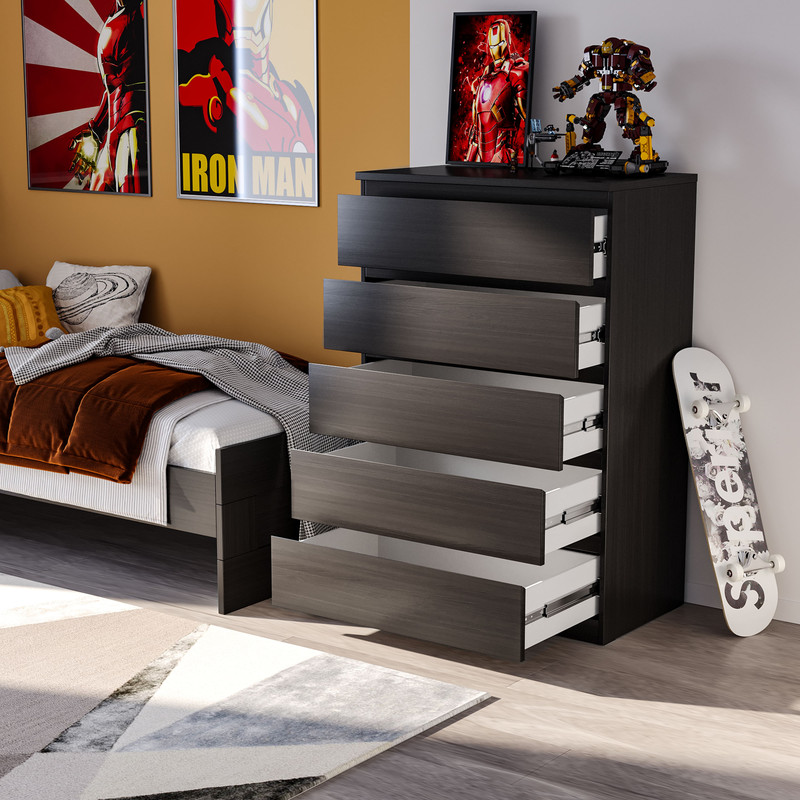 Комод МАЛЬТА с пятью выдвижными ящиками, 803х480х1212, цвет Дуб Венге. Крепится к стене. Гарантийный срок для жилых помещений 24 месяца, для общественных помещений - 18 месяцев.