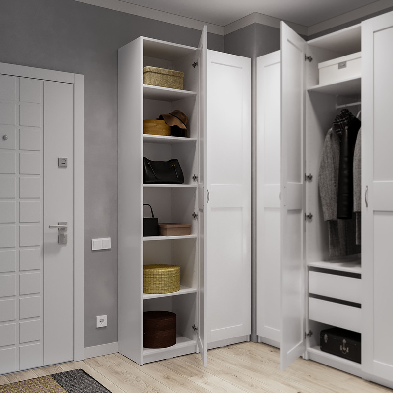 Шкаф МАКС для одежды однодверный, 500х380х2330, цвет Белый. Дверь может быть установлена как с правым, так и с левым открыванием. Укомлектован двумя полками. Изготовлен из кашированного ДСП толщиной 18 мм. Крепится к стене. Гарантийный срок для жилых помещений 24 месяца, для общественных помещений - 18 месяцев.