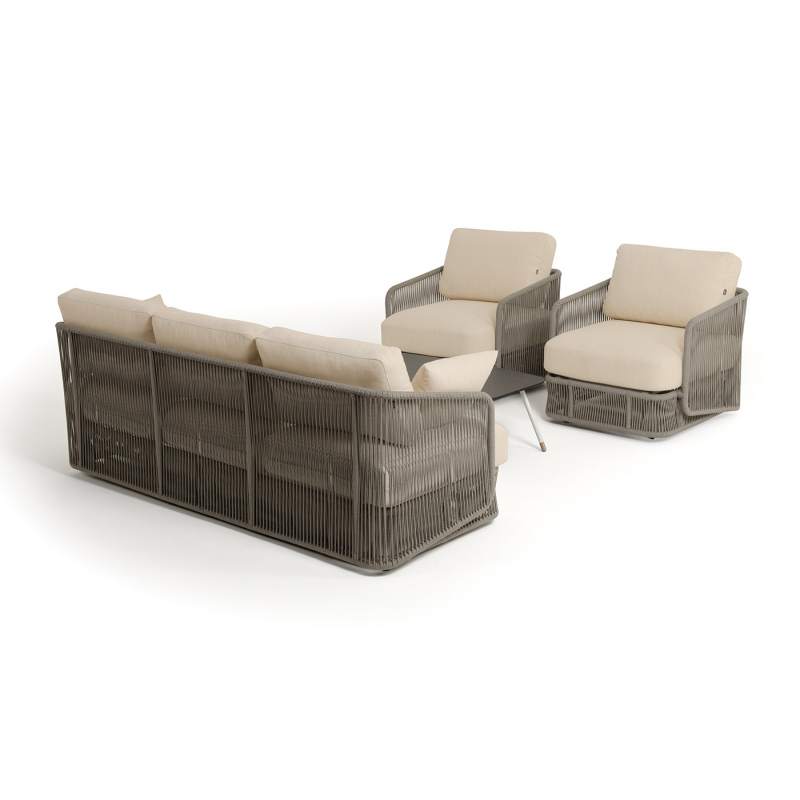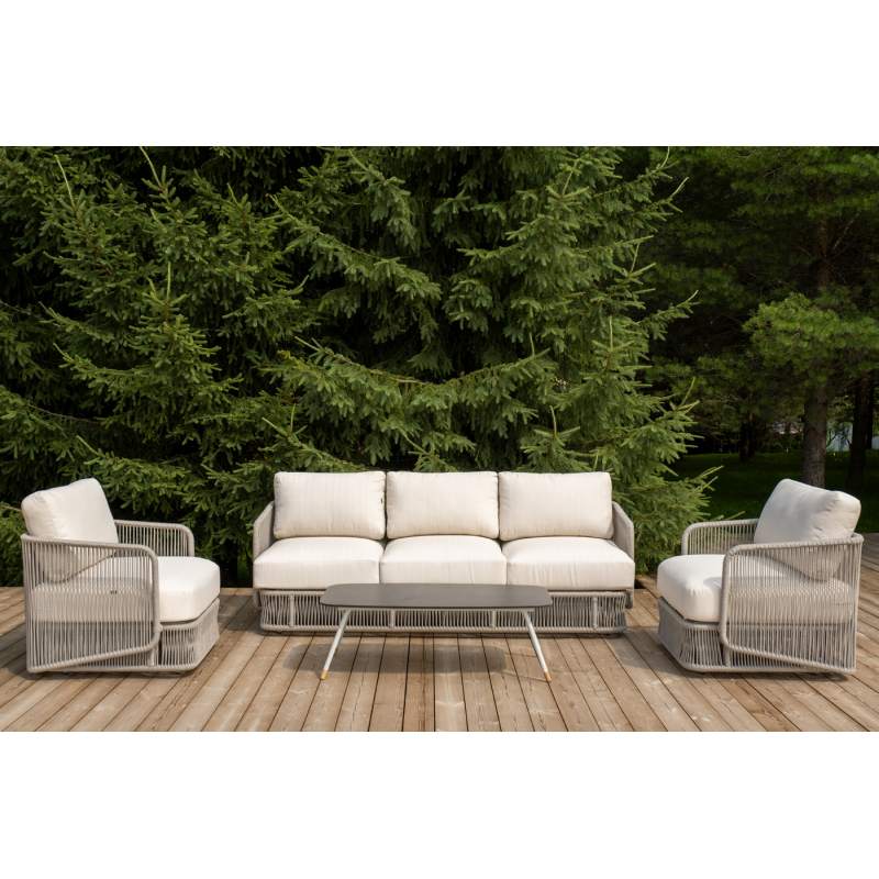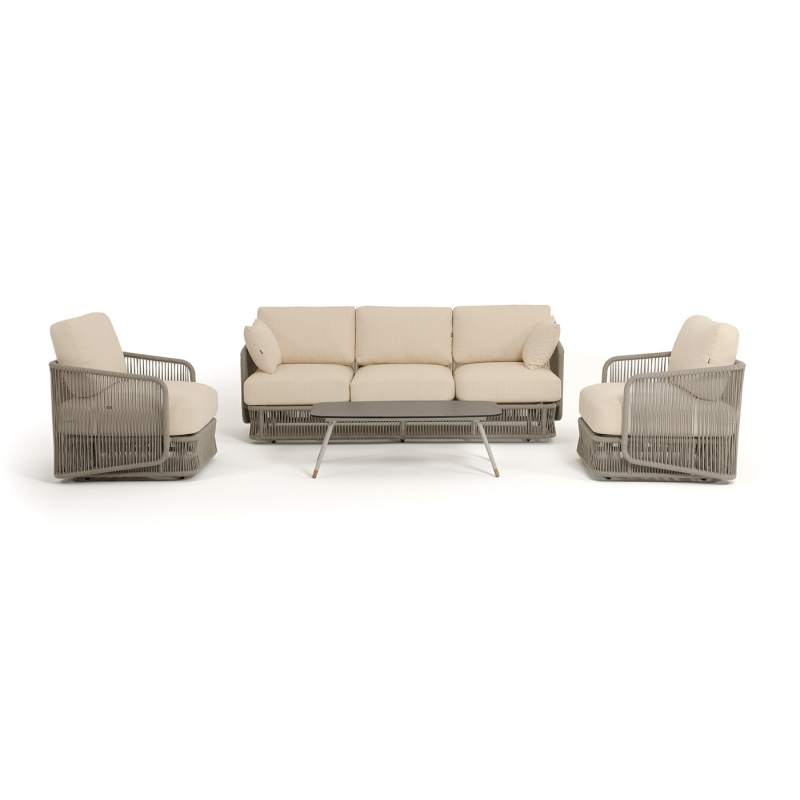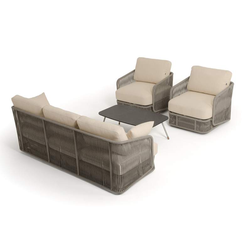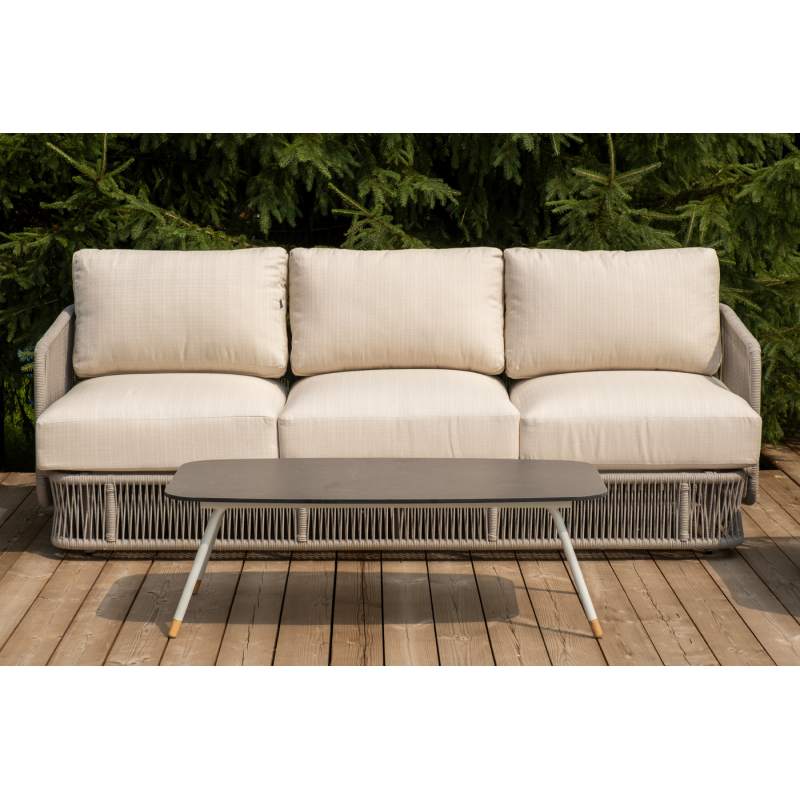 "Альбано" диван 3-местный плетеный из роупа, каркас алюминий светло-серый (RAL7035) муар, роуп серый 1шт. 2 320Х865Х780, "Альбано" кресло плетеное из роупа, каркас алюминий светло-серый (RAL7035) муар, роуп серый меланж к 2шт. 920Х865Х750, "Верона" журнальный стол из HPL 120х65, H40, каркас светло-серый (RA L7035) муар, цвет столешницы "с 1шт. 1 200Х650Х400,