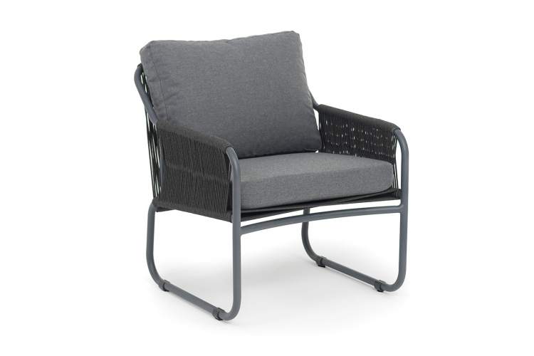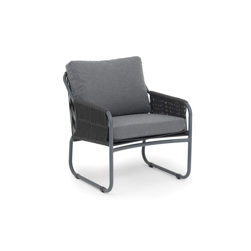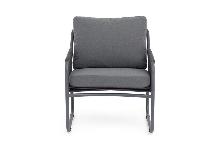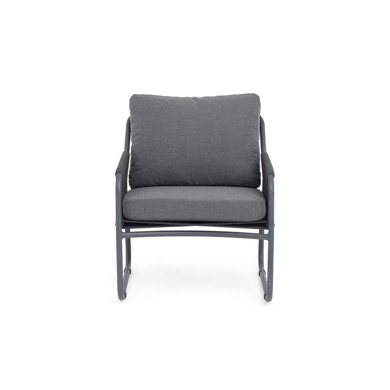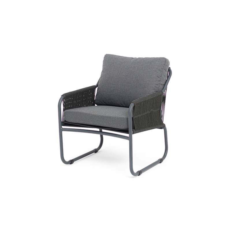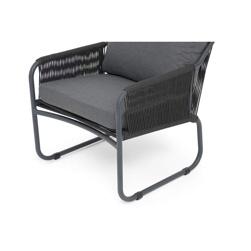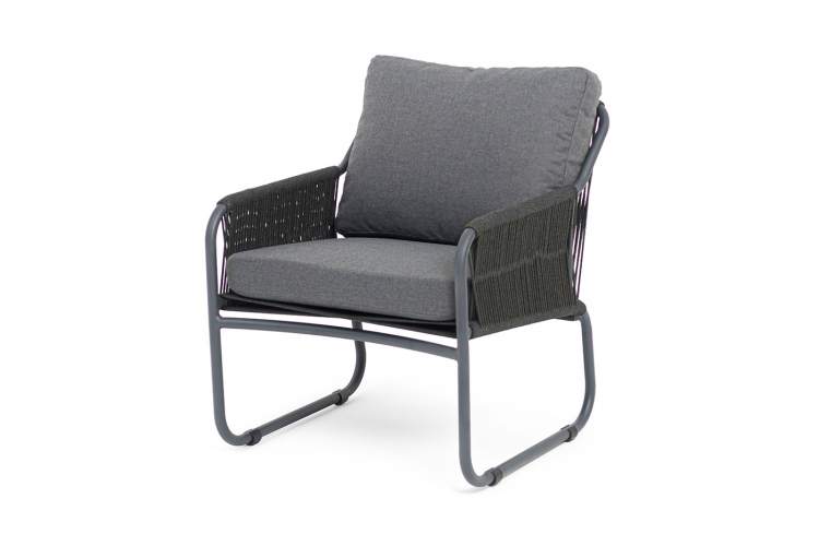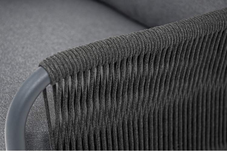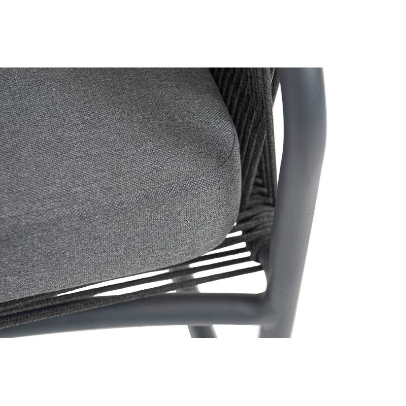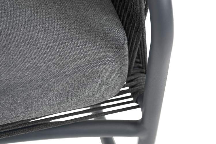 "Ането" кресло плетеное из роупа, каркас алюминий темно-серый (RAL7024) муар, роуп темно-серый круглый, ткань темно-серая 027