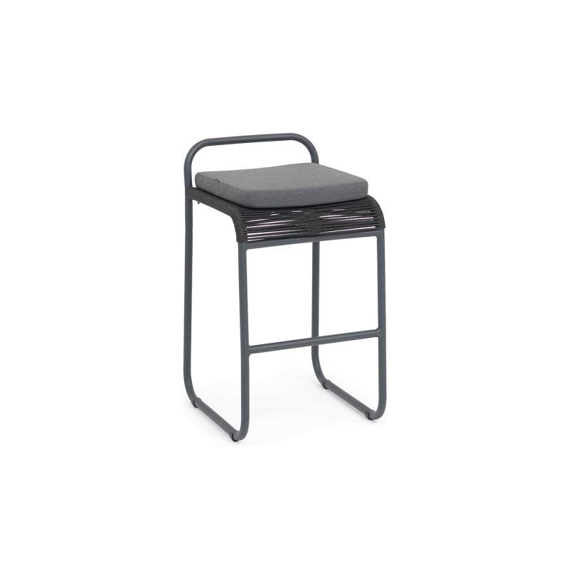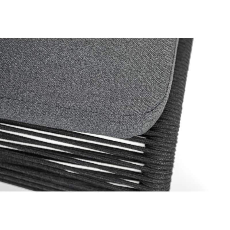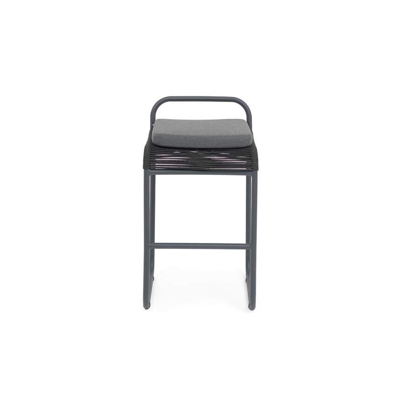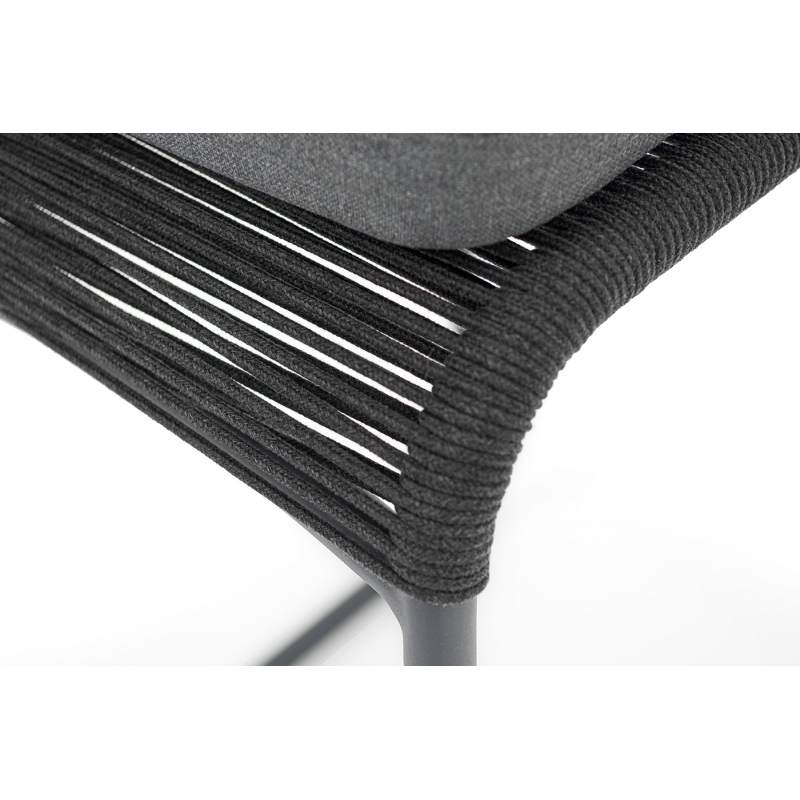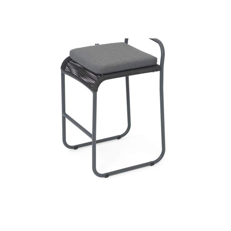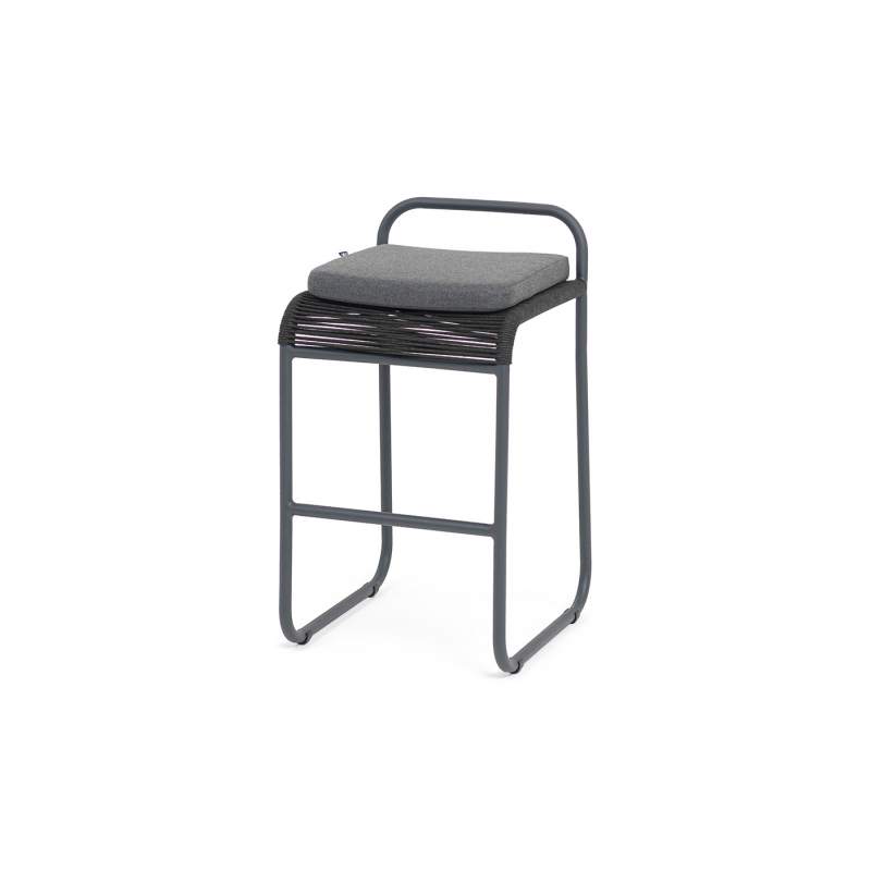 "Ането" стул барный плетеный из роупа, каркас алюминий темно-серый (RAL7024) муар, роуп темно-серый круглый, ткань темно-серая 027