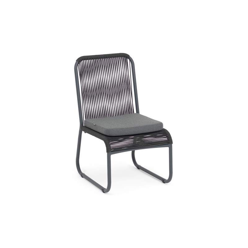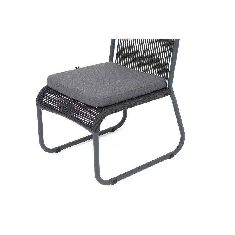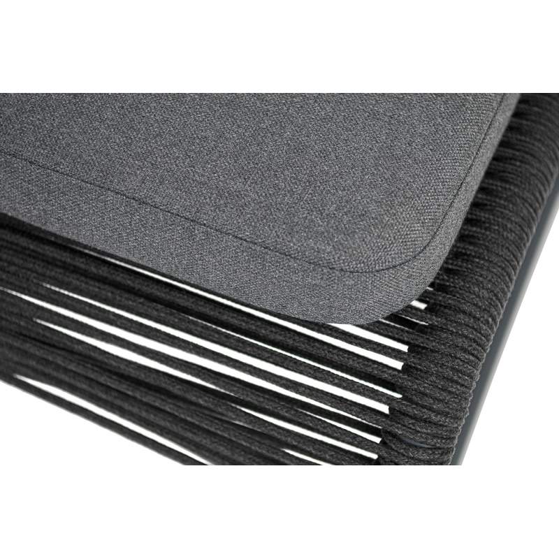 "Ането" стул плетеный из роупа, каркас алюминий темно-серый (RAL7024) муар, роуп темно-серый круглый, ткань темно-серая 027