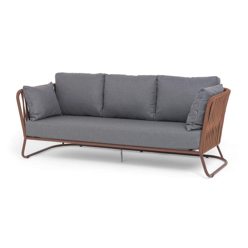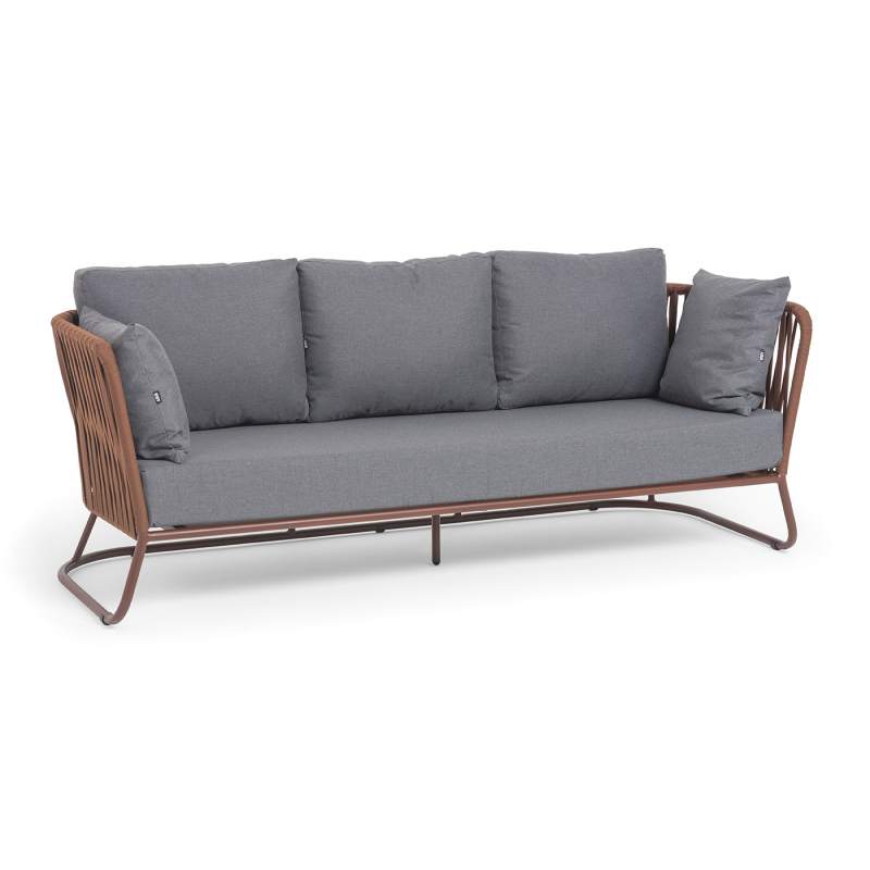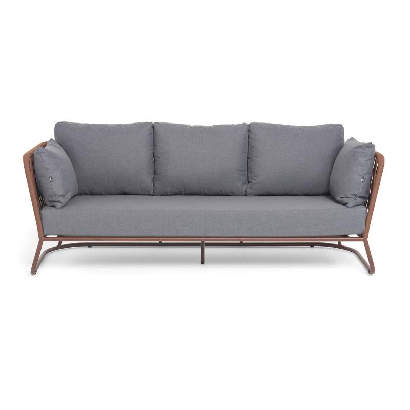 "Багамы" диван 3-местный плетеный из роупа, каркас алюминий бежево-серый (RAL7006) муар, роуп серо-коричневый 23мм, ткань светло-серая
