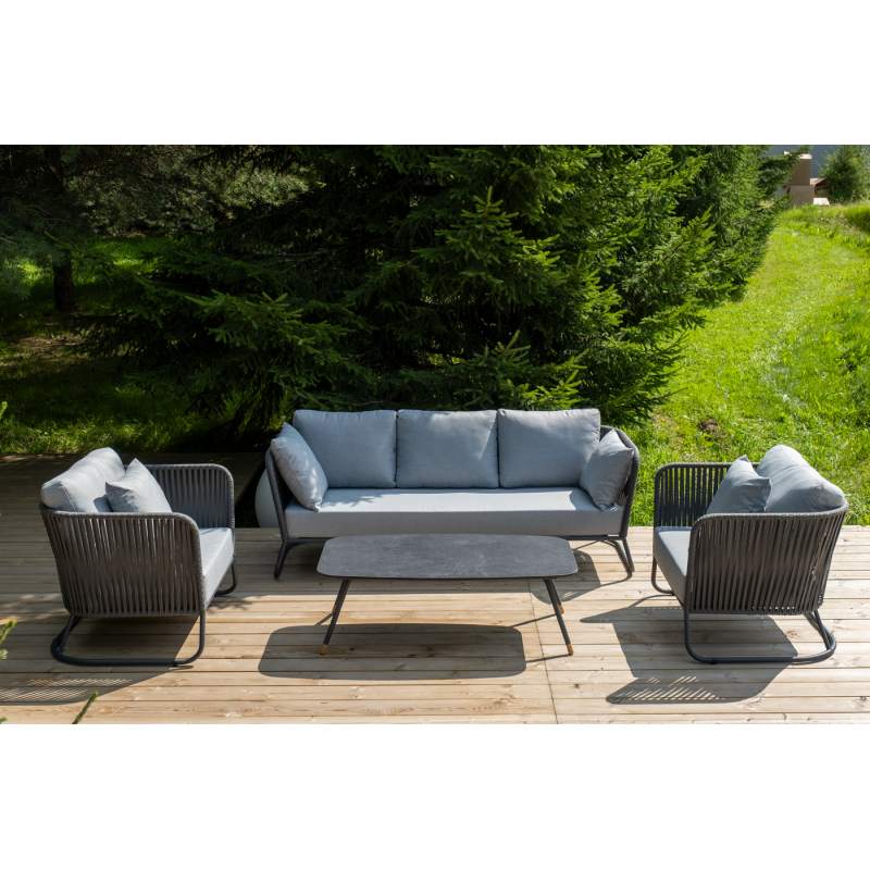 "Багамы" лаунж-зона 5-местная плетеная из роупа (веревки), каркас алюминиевый темно-серый, роуп серый