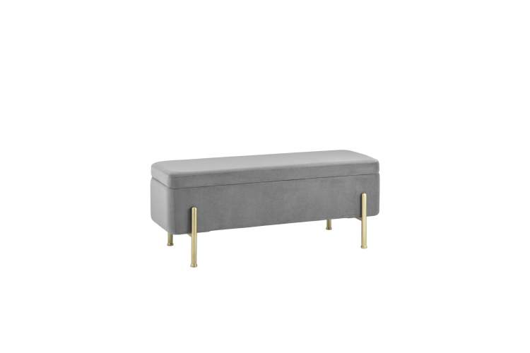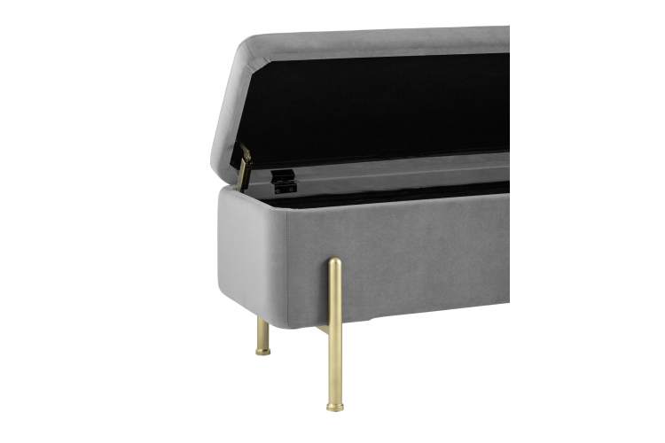 Банкетка Болейн с ящиком велюр серый ножки из металла цвет золото