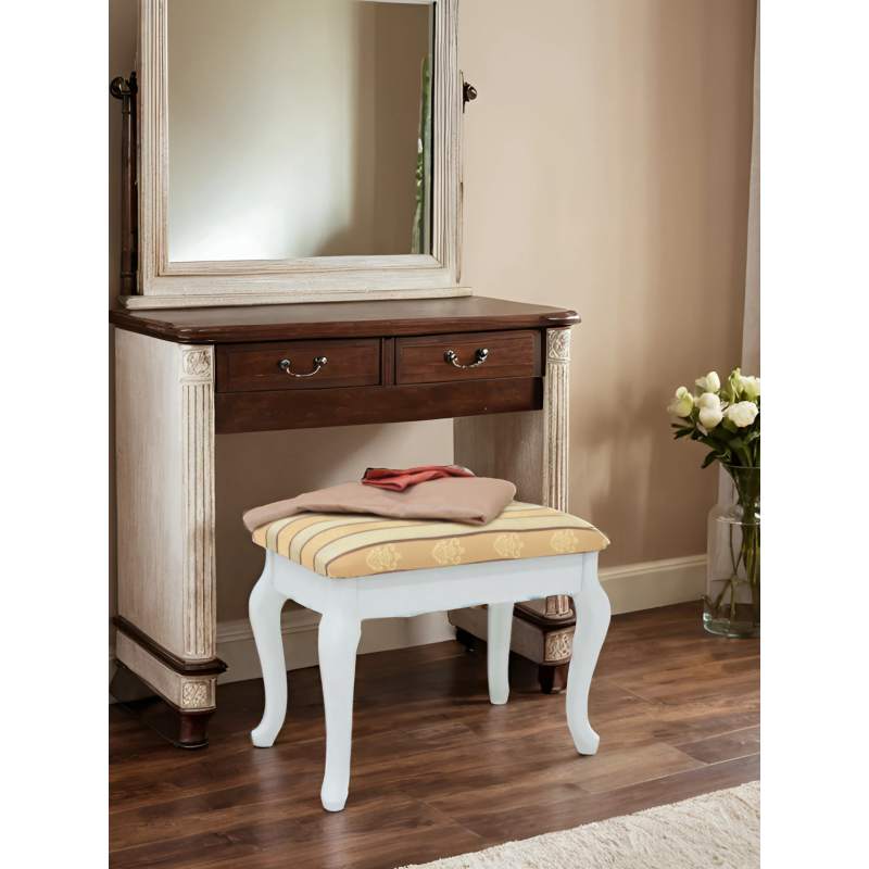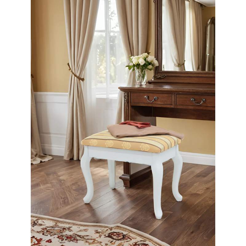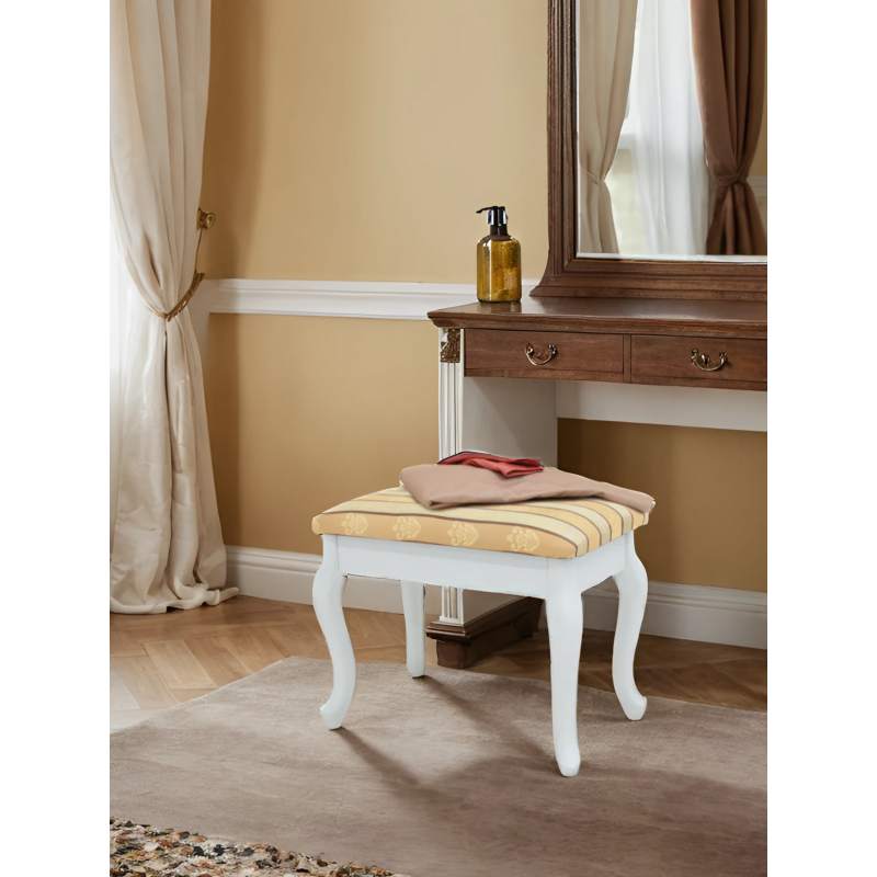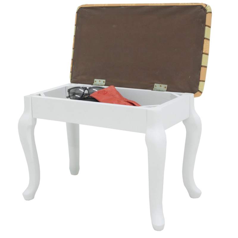 Банкетка Ретро с ящиком белый, ткань полоса бежевый