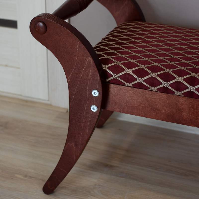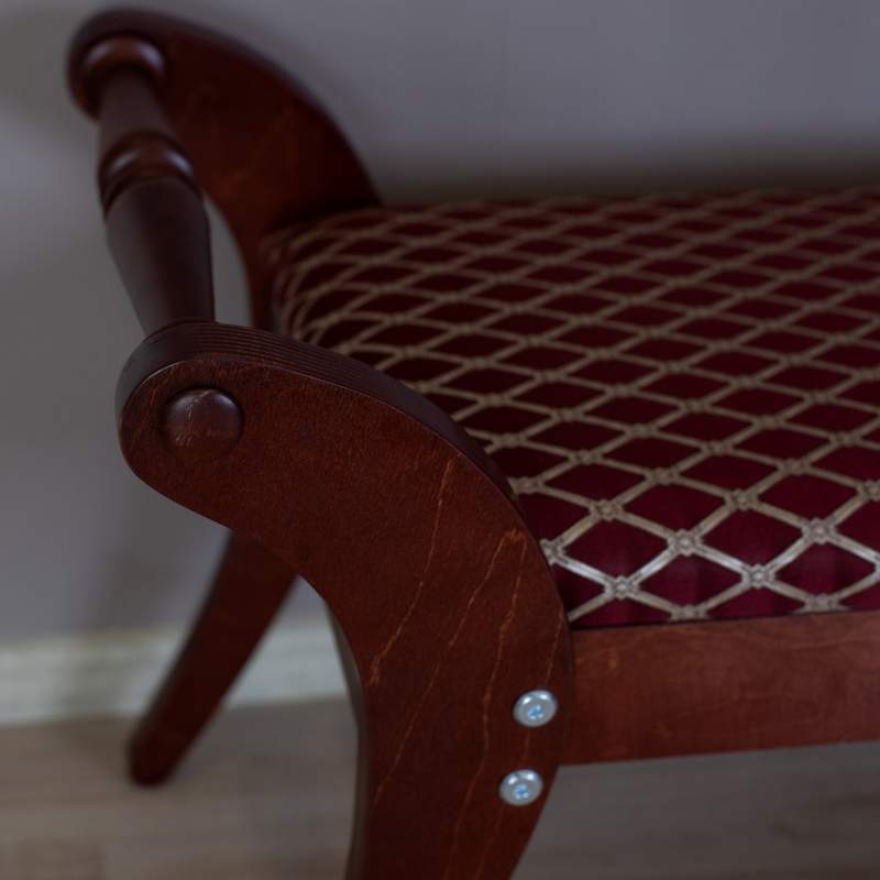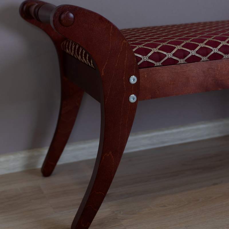 Банкетка «Тифани» очень компактно упакована, транспортировать ее можно даже в общественном транспорте. При производстве использованы качественные материалы – массив березы, шпон березы, ткань жаккард, вспененный пенополиуретан, лак.___