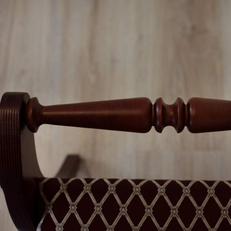 МАТЕРИАЛЫ: шпон березы, ручки- береза, ткань жаккард, поролон, синтепон