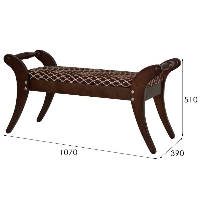 Банкетка «Тифани» очень компактно упакована, транспортировать ее можно даже в общественном транспорте. При производстве использованы качественные материалы – массив березы, шпон березы, ткань жаккард, вспененный пенополиуретан, лак.___