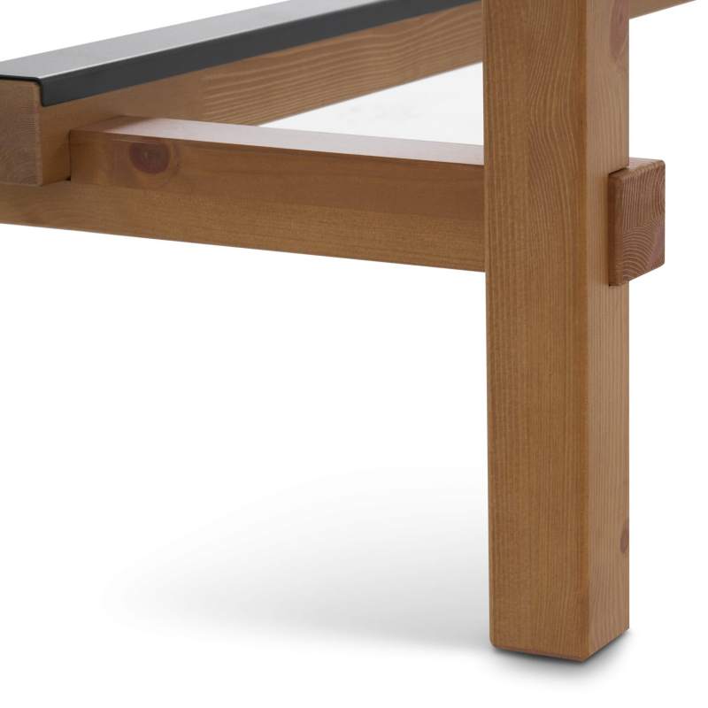 Изготовлен из массива сосны. Покрытие выполнено с использованием красителей на водной основе и лака на основе акриловых смол с УФ-отверждением.