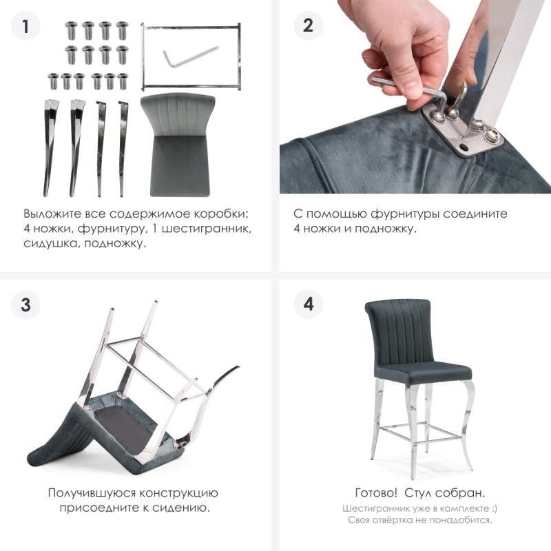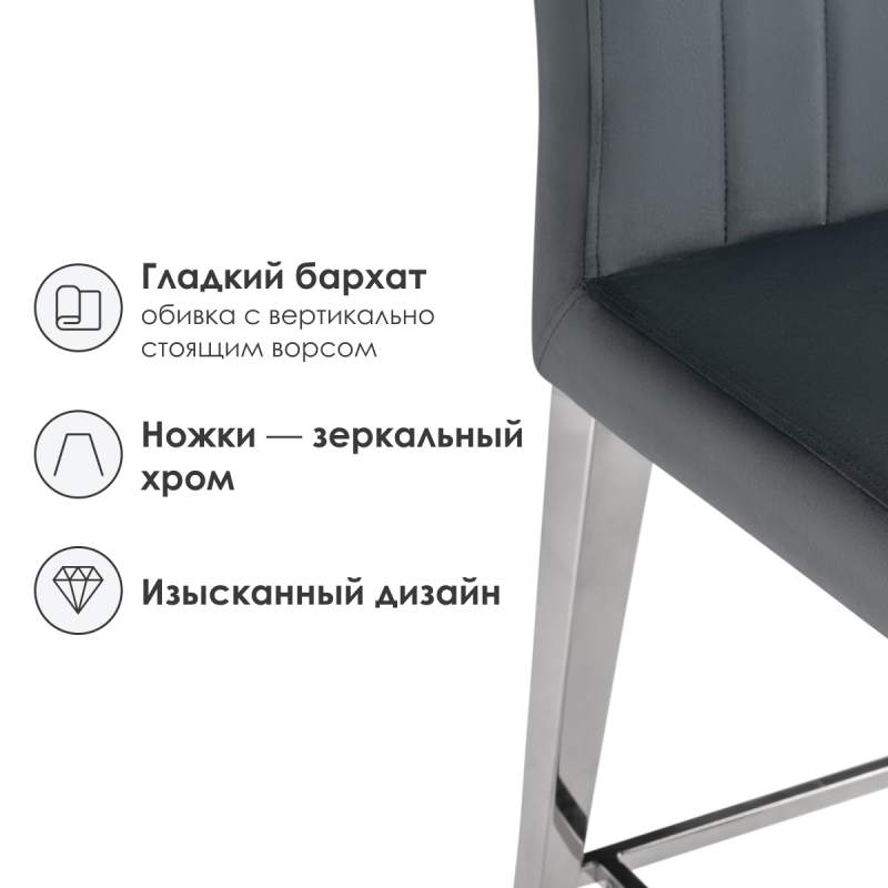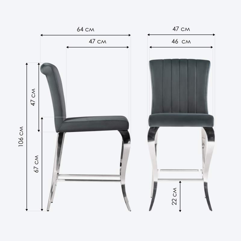 Высота подножки: 22 см. Материал каркаса - металл; Материал сиденья - велюр; Материал обивки - велюр; Ширина - 47; Глубина - 64; Высота - 106; Ширина сиденья - 46; Глубина сиденья - 47; Высота сиденья - 67;