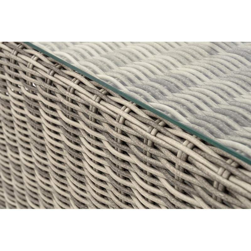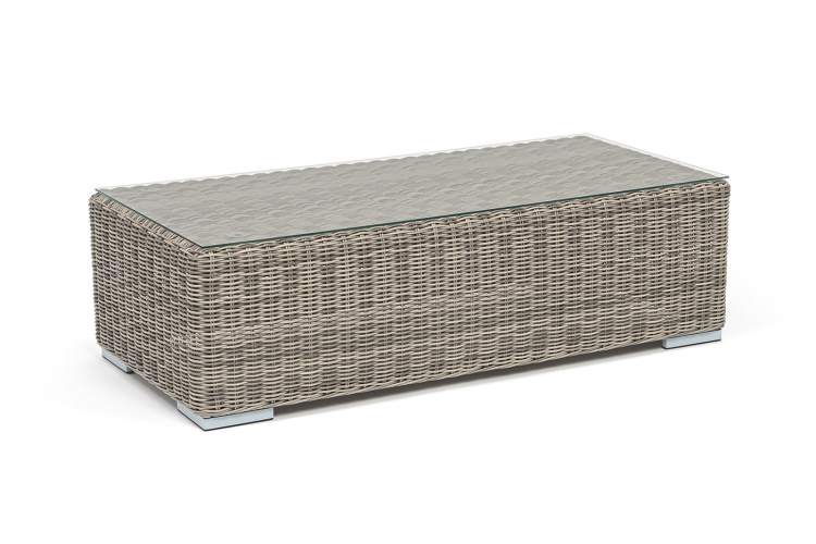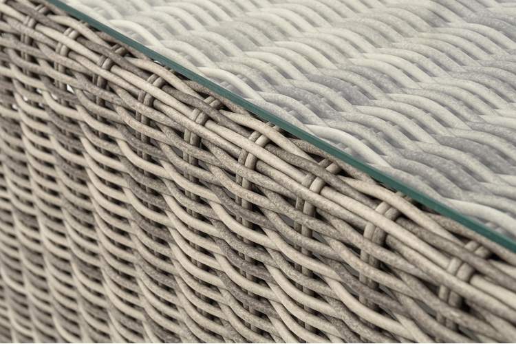 Журнальный столик «Боно» используется как в комплекте, так и в качестве отдельного предмета для сада, открытой террасы или балкона. Каркас столика изготовлен из алюминия, вручную оплетенного круглым искусственным ротангом. Столешница из закаленного стекла толщиной 5 мм. Благодаря износостойким материалам, стол пригоден для использования на улице при любой погоде и не требует специальных условий хранения. Плетеный столик представлен в бежевом цвете. Размеры стола: 1300×600×400 мм, вес 20,5 кг.