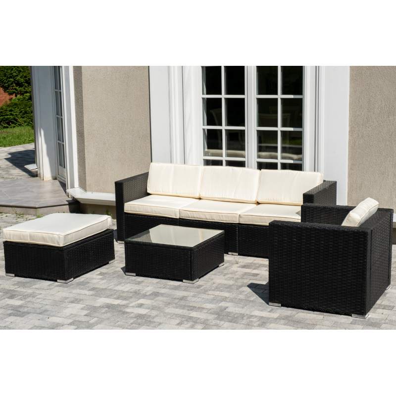 "Даллас" лаунж-зона из искусственного ротанга на 5 персон, цвет черный