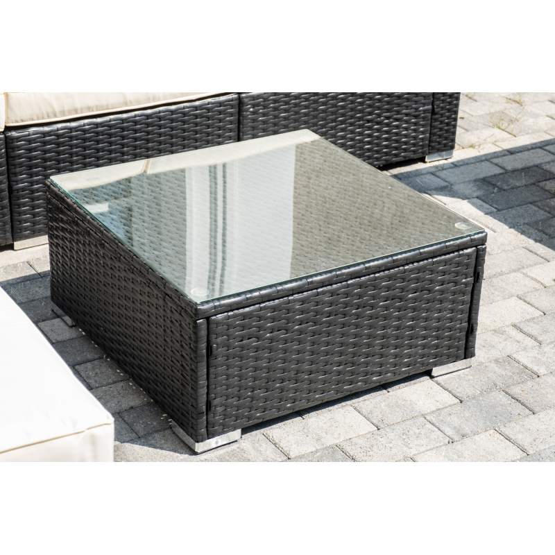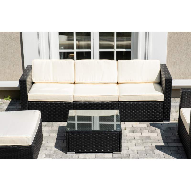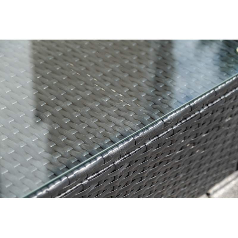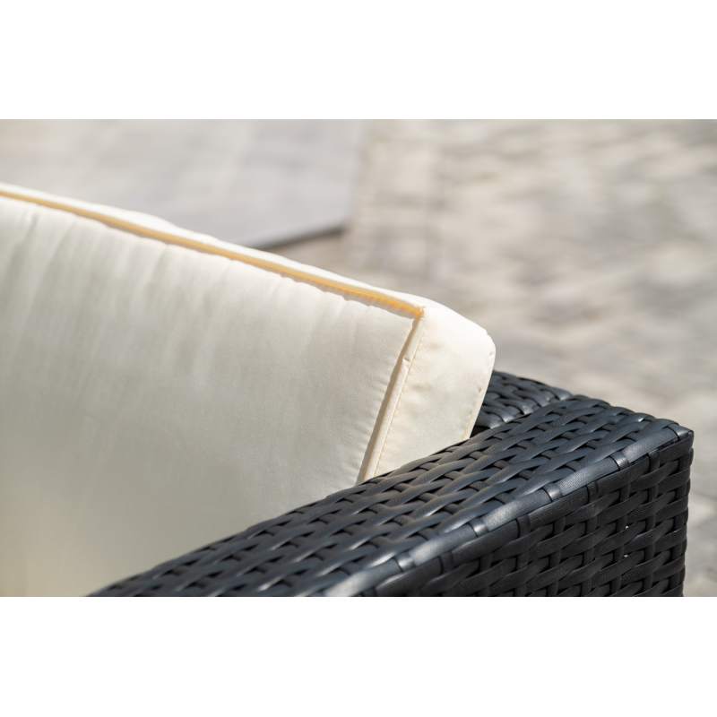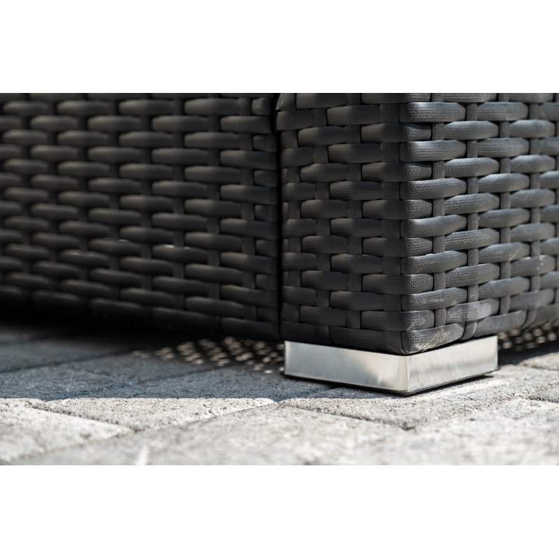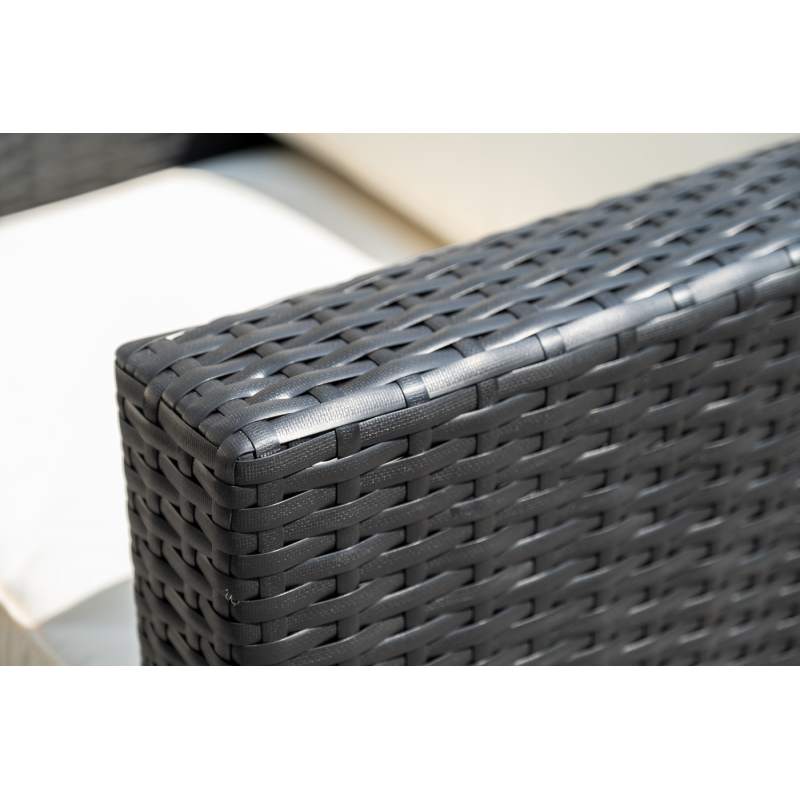 В основе мебели - стальной каркас и плоский искусственный ротанг. Каркас оплетен с помощью ручного метода и представлен в черном цвете.