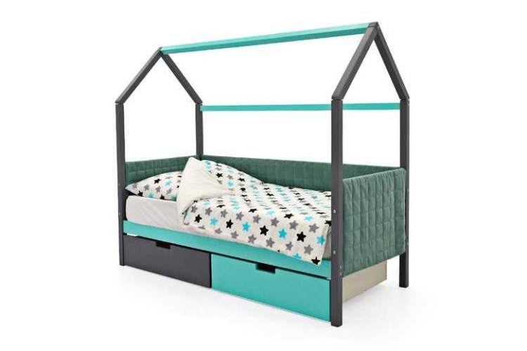 Детская кровать-домик мягкий Бельмарко Svogen графит-мятный