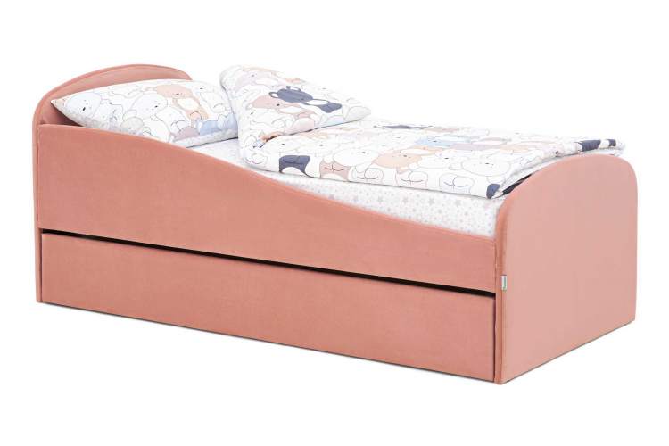 Детская мягкая кровать с ящиком Бельмарко Letmo пудровый велюр