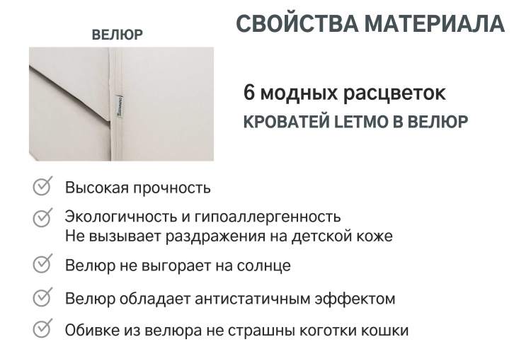 Детская мягкая кровать с ящиком Бельмарко Letmo ванильный велюр