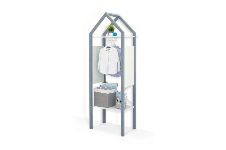 Детский напольный стеллаж-домик трансформер 2 в 1 «Svogen»- стильное и удобное место для хранения вещей или игрушек в детской комнате для мальчиков и девочек. Выполнен в скандинавском лаконичном стиле. Стеллаж можно использовать в двух вариантах – как стеллаж с полками или как стеллаж для одежды с вешалом. На полках стеллажа можно разместить короба для игрушек или одежды, а также книги, журналы или аксессуары для детского творчества и занятий. Стеллаж изготавливается из массива сосны, покрытого эмалью/лаком на водной основе, полки из ЛДСП края покрыты кромкой ПВХ. Все используемые при производстве материалы полностью экологичны и безопасны. Стеллаж стоит на 4ех ножках. Для устойчивости конструкцию детского стеллажа можно прикрепить к стене с помощью специального уголка, который идет в комплекте. Стеллаж сконструирован так, что его можно использовать в двух вариантах – с четырьмя полками или с вешалом и одной полкой. Все необходимое для двух вариантов сборки стеллажа идет в комплекте. Крышу домика при желании можно снять. Высокопрочная конструкция стеллажа позволяет выдержать нагрузку на одну полку до 10 кг. В комплект входит 4 крючка, вешало для одежды, z-образный уголок для надежного крепления к стене. У стеллажа есть два варианта сборки. Можно самостоятельно решить, что больше нравится – стеллаж для одежды либо классический стеллаж с полками. Богатая палитра цветов как во всей серии Svogen, актуальный модный дизайн. Размер полок позволяет вместить по два интерьерных короба Бельмарко на одной полке. Стеллаж всегда будет выглядеть аккуратно и никакого беспорядка на полках. Абсолютно безопасная конструкция, т.к. стеллаж можно закрепить к стене и не волноваться, что ребенок его уронит, потянувшись за любимой игрушкой. Сочетается с любой мебелью из серии Svogen, можно сделать детскую комнату в едином стиле. Размер: 65х41х192 (ДхШхВ) см Нагрузка (кг): До 40 Материал: ЛДСП, Массив сосны Комплектация: Вешало, Инструкция по сборке, Полки, фурнитура Уход: Локальное удаление загрязнений Конструкция: сборная Крепление к стене: Да Количество полок: 4 Расстояние между полками: 37 см Глубина полок (см): 32 см Ножки: массив сосны Сборка: Самостоятельная (интуитивно понятная пошаговая инструкция) Упаковка: 3-х слойный гофрокартон Фабричная гарантия: 1 год Стиль: Скандинавский Серия: «Svogen»