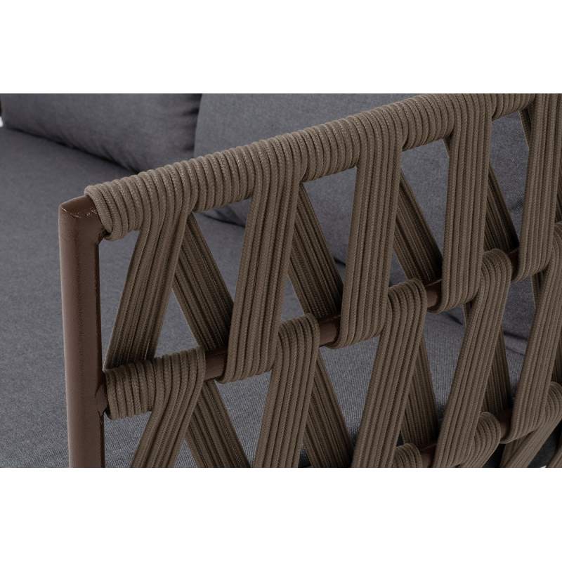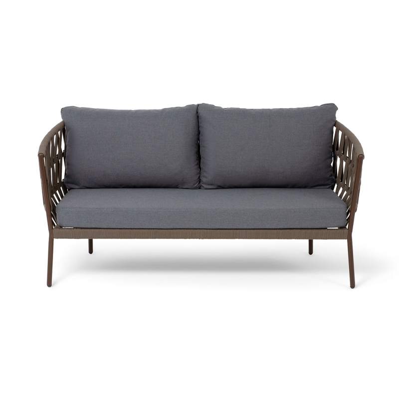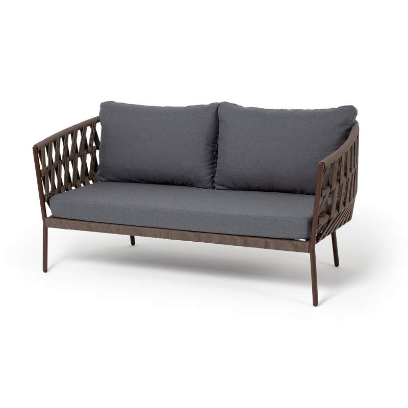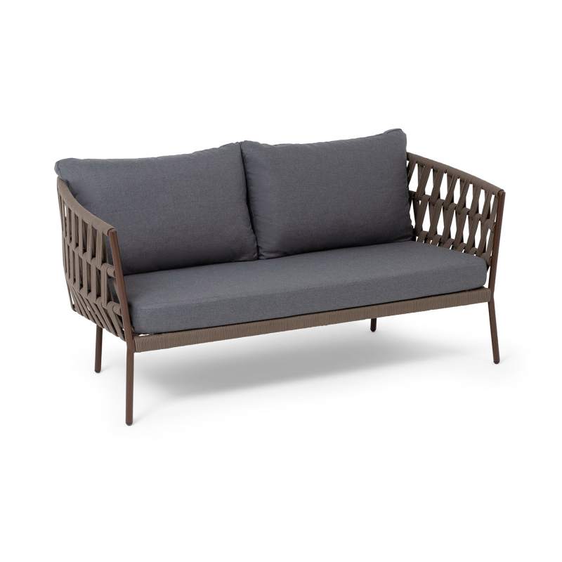 "Диего" диван 2-местный плетеный из роупа, каркас алюминий коричневый (RAL8016) муар, роуп коричневый круглый, ткань темно-серая 027