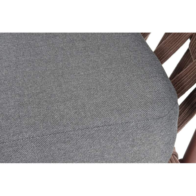 "Диего" кресло плетеное из роупа, каркас алюминий коричневый (RAL8016) муар, роуп коричневый круглый, ткань темно-серая 027