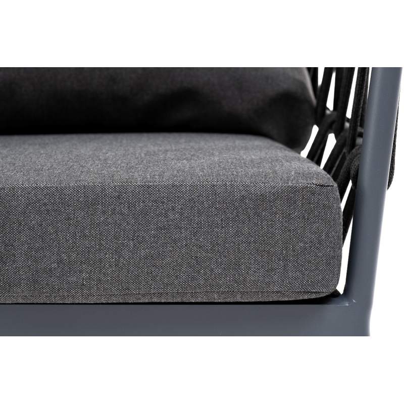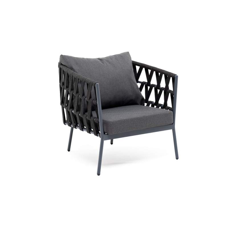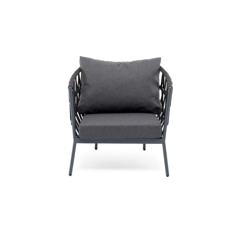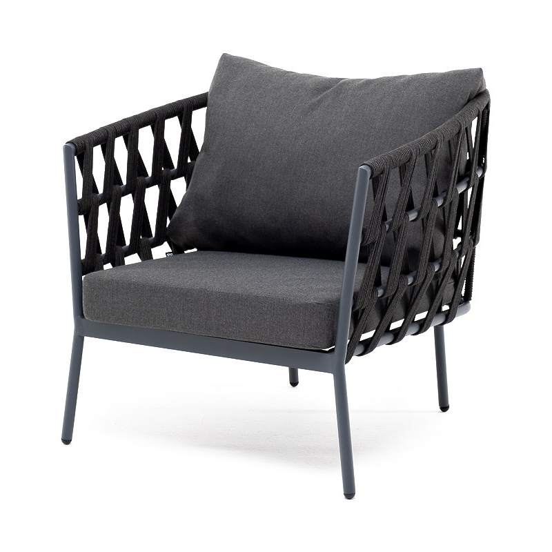 "Диего" кресло плетеное из роупа, каркас алюминий темно-серый (RAL7024) муар, роуп темно-серый круглый, ткань темно-серая 027
