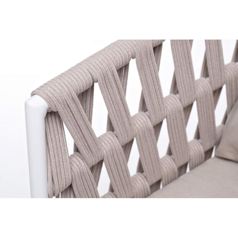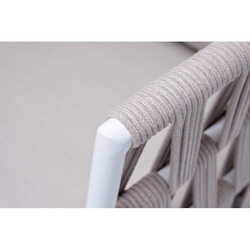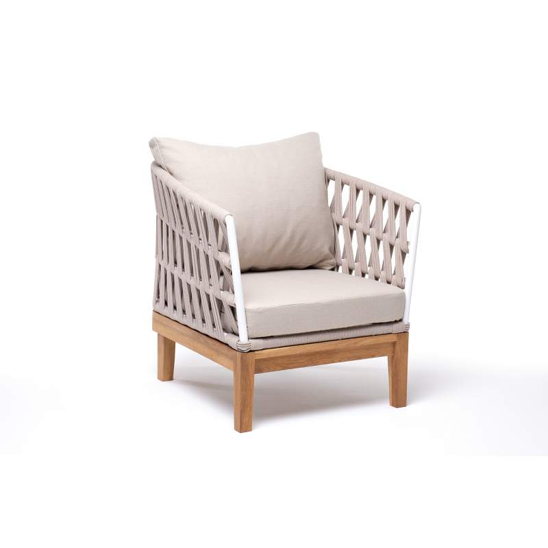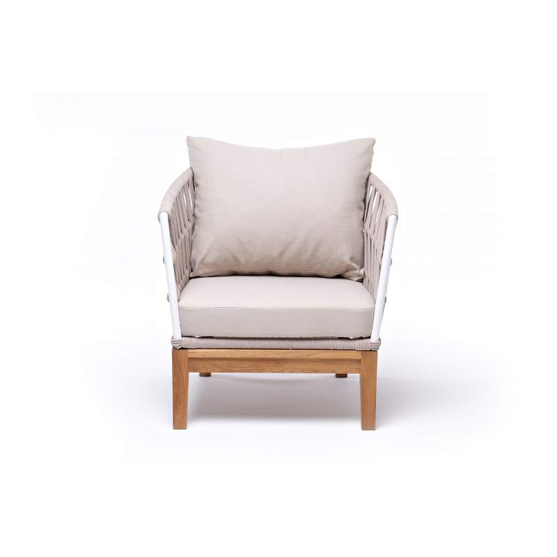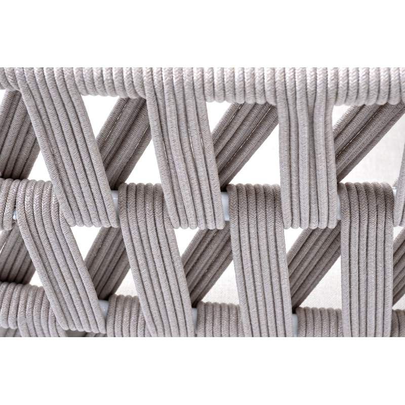 "Диего" кресло плетеное из роупа, основание дуб, каркас алюминий светло-серый (RAL7035) шагрень, роуп бежевый круглый, ткань бежевая 15052