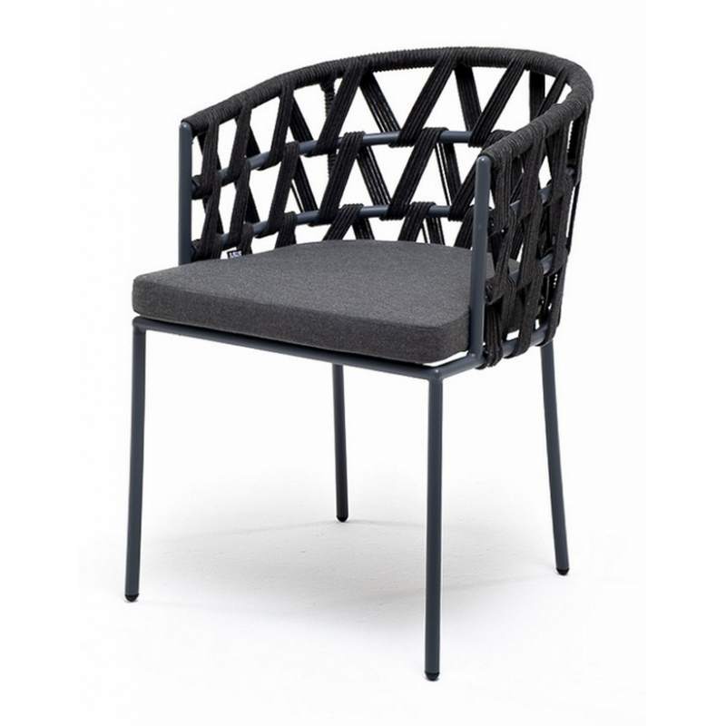 "Диего" стул плетеный из роупа, каркас из стали серый (RAL7022) муар, роуп серый круглый, ткань темно-серая 027