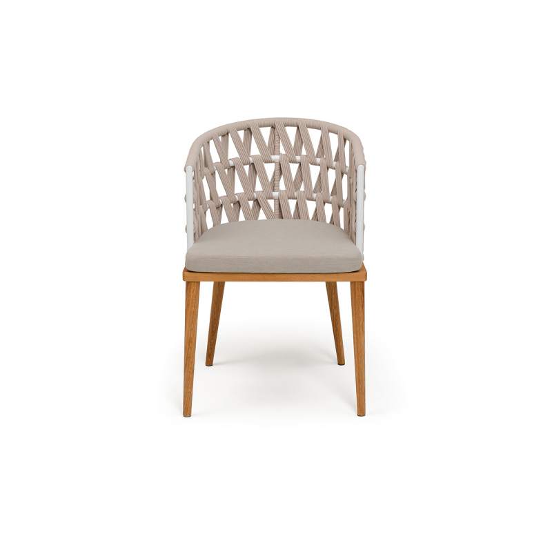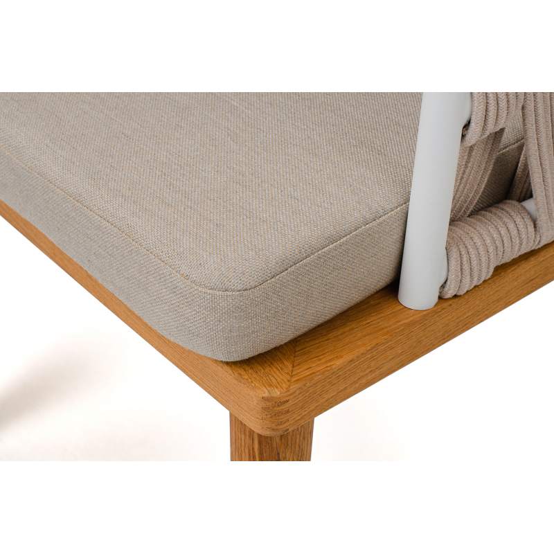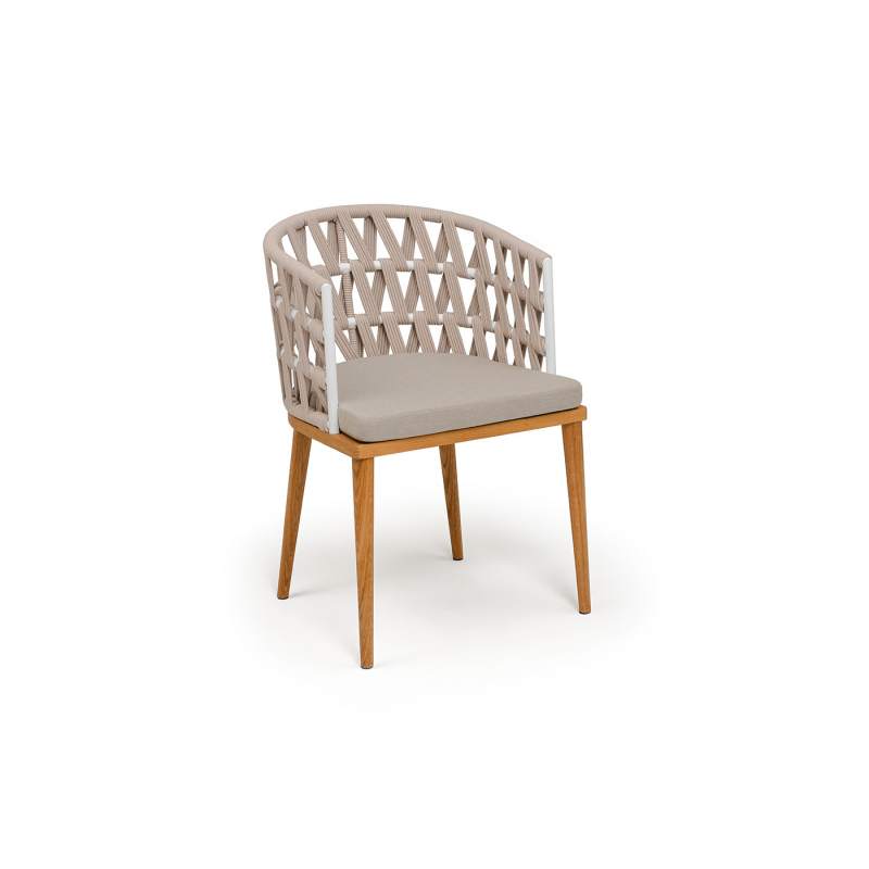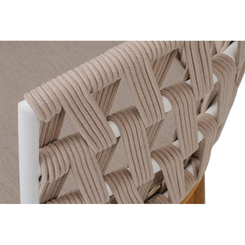 "Диего" стул плетеный из роупа, основание дуб каркас из стали белый муар, роуп бежевый круглый, ткань бежевая 052