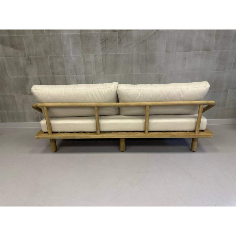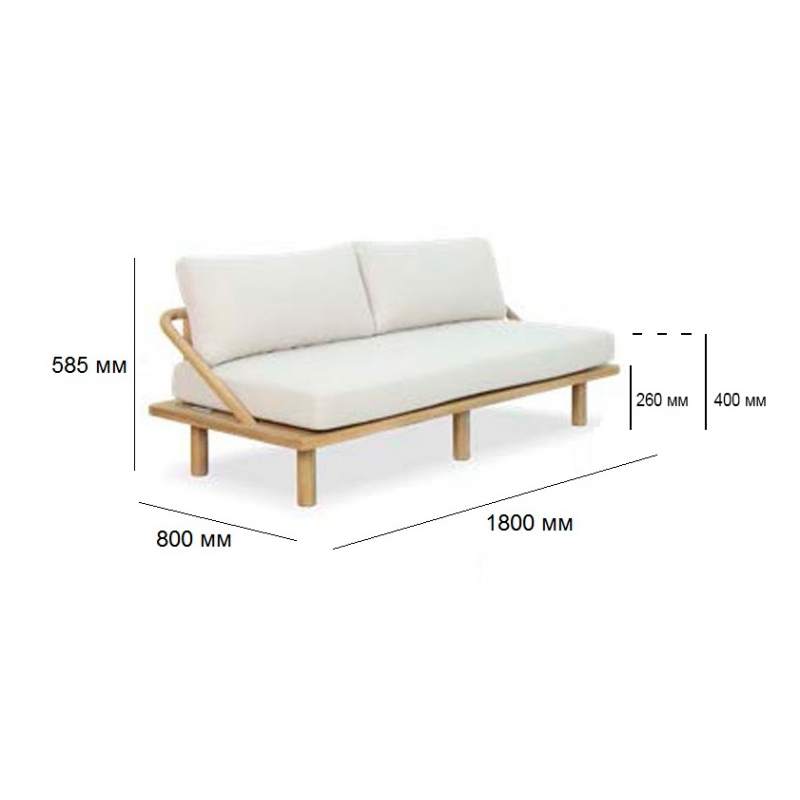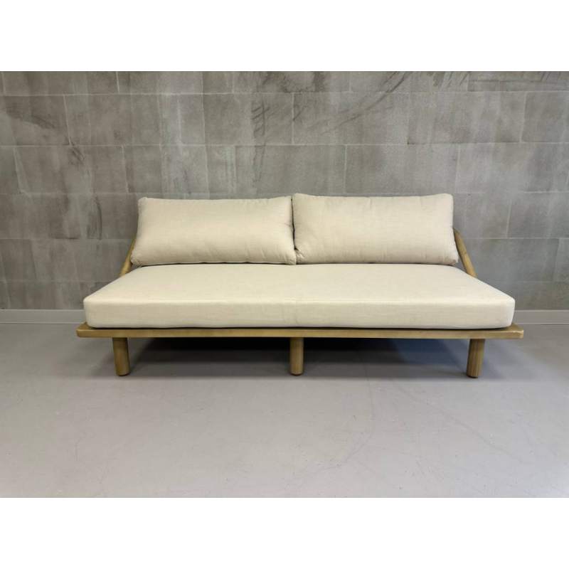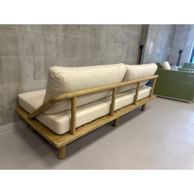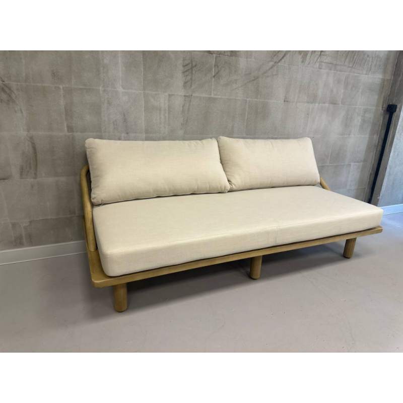 Диван деревянный трехместный с подушками Denmark Tagliamento натуральный, льняной бежевый