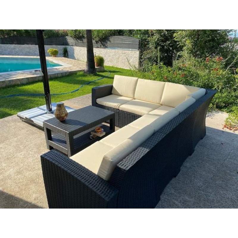 Диван пластиковый плетеный угловой с подушками Monaco Lounge Corner Siesta Contract антрацит