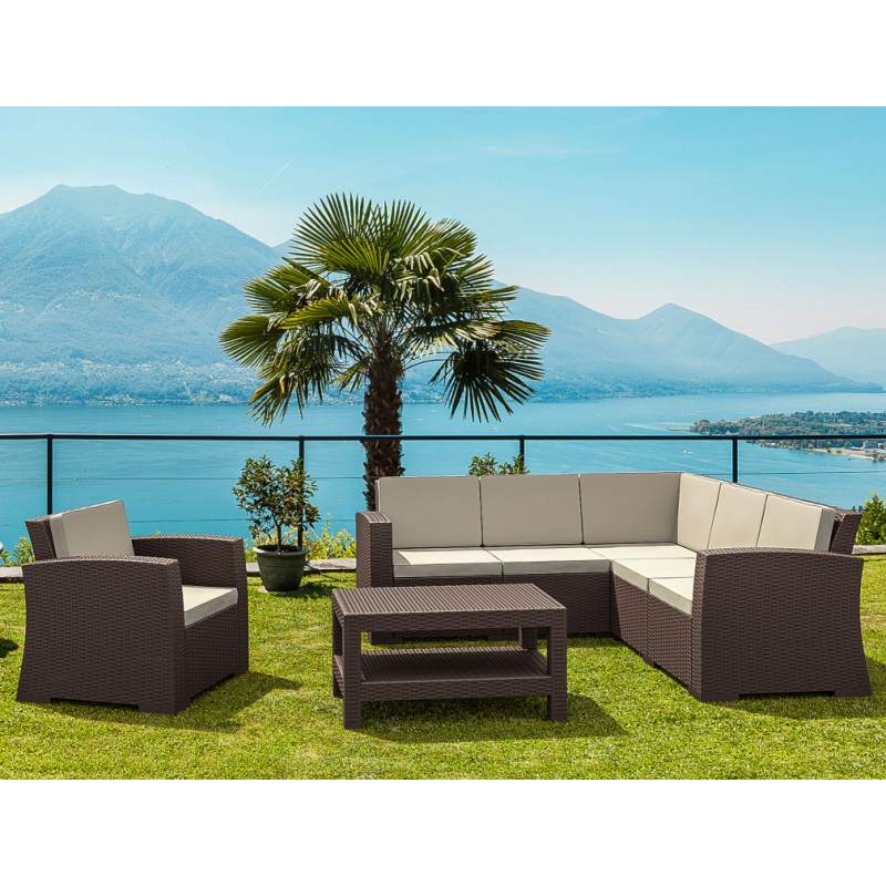 Диван пластиковый плетеный угловой с подушками Monaco Lounge Corner Siesta Contract коричневый