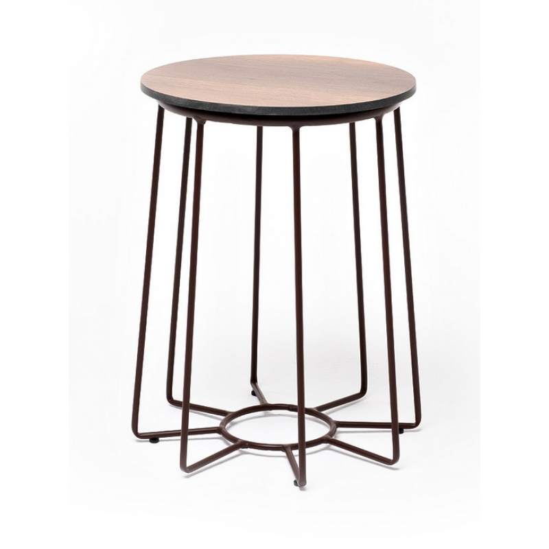 "Эквадор" журнальный стол из HPL круглый Ø40 H55, каркас из алюминия коричневый (RAL 8016) муар, цвет столешницы "дуб"