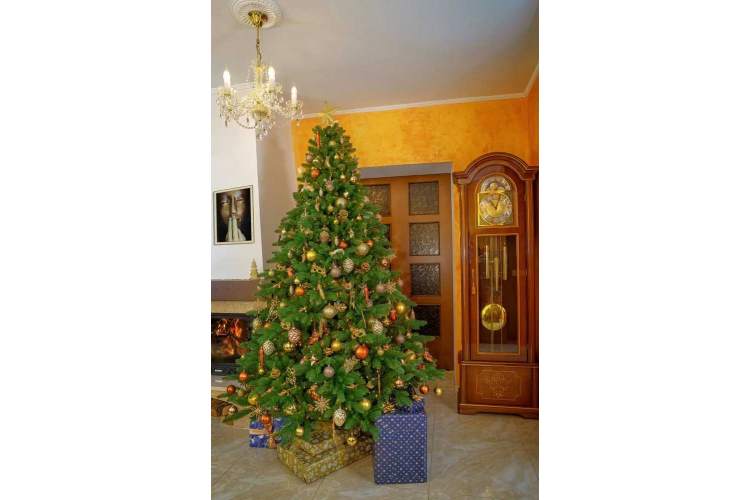 Елка новогодняя искусственная Финская премиум 180 см.Новогодняя искусственная елка Финская премиум удивит Вас своей натуральностью и реалистичностью. Пушистые веточки темнозеленого цвета выглядят как живые. Еловые иголки не мнутся и не осыпаются. Елка выглядит, как настоящее хвойное дерево из зимнего леса. Все родные, близкие и гости оценят елочку по достоинству. Пышная елка станет Вашим фаворитом. Как же прекрасно встречать Новый год с лесной красавицей. Приобретя праздничную елку, Вы без труда соберете её, так как механизм крепления веток к металлическому стволу – шарнирный. Также надежная пятислойная коробка из гофрокартона позволит хранить ель после. Материал ветвей сделан по специальной технологии из 100% литого полиэтилена. Обычно принято называть силиконовая или резиновая елка. Такие елки считаются более надежными, безопасными и долговечными. От литой елки нет запаха, все материалы используемые при производстве елок – экологически чистые. Любой женщине и девушке будет приятно получить такой подарок к Новому году. Дети будут просто в восторге от зеленого дерева. А украшать и создавать семейный уют будет намного веселее всей семьей. Это станет прекрасной семейной традицией. Сказка и волшебство придет в ваш дом с новой елкой. Украшения и декорации дополнят образ напольной елки. Елочные новогодние украшения шары, игрушки, цветы, фигурки из фетра замечательно впишутся в интерьер ели. Не забудьте про подсветку, светодиодная гирлянда заставит сиять Вашу елочку. Ну и конечно, как же без звезды на верхушку макушку. Подножку можно задекорировать плетеной корзиной. А рядом поставить куклы игрушки Деда Мороза и Снегурочки. Любой ребенок будет с нетерпением ждать, когда же под рождественской елкой появятся заветные подарки. Нарядная елка готова к встрече предстоящих праздников! Никто не пройдет мимо! Устройте семейную фотосессию не выходя из дома! Желаем счастья, здоровья и любви в Новом году! Базовые характеристики: Высота: 180 см Диаметр основания: 128 см Конструкция: ствольная Количество ветвей: 1375 Тип крепление веток: шарнирное Материал: 100 % РЕ Тип елки: напольная; комнатная; искусственная Материал подставки: металл Подсветка: нет Цвет: зеленая Страна производства: Россия Габариты упаковки: Ширина упаковки: 40 см Длина упаковки: 115 см Высота упаковки: 35 см Вес с упаковкой: 11.1 кг Гарантия от производителя: 12 месяцев