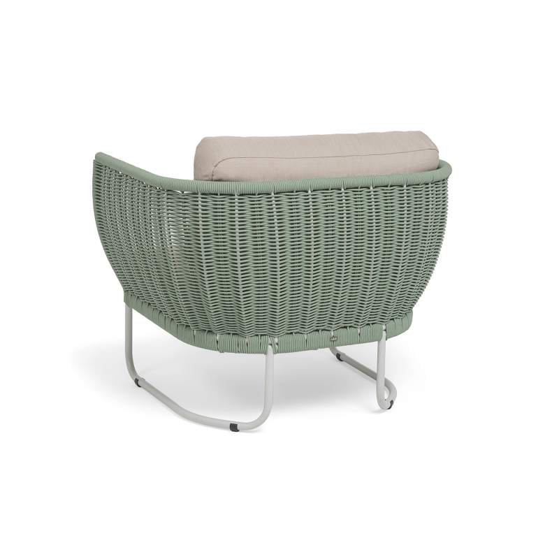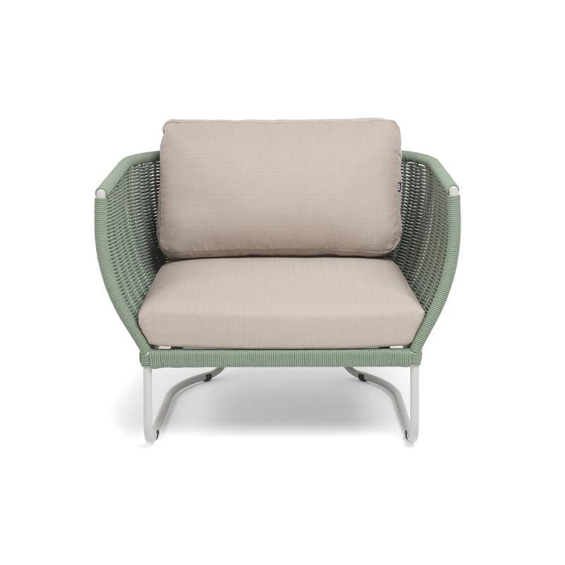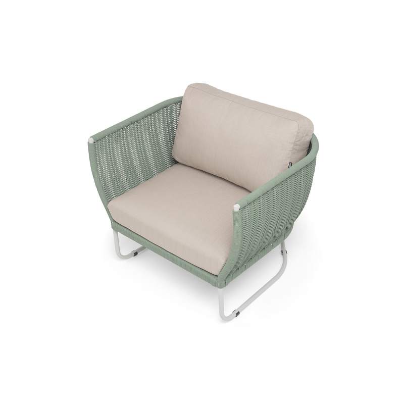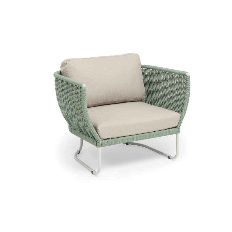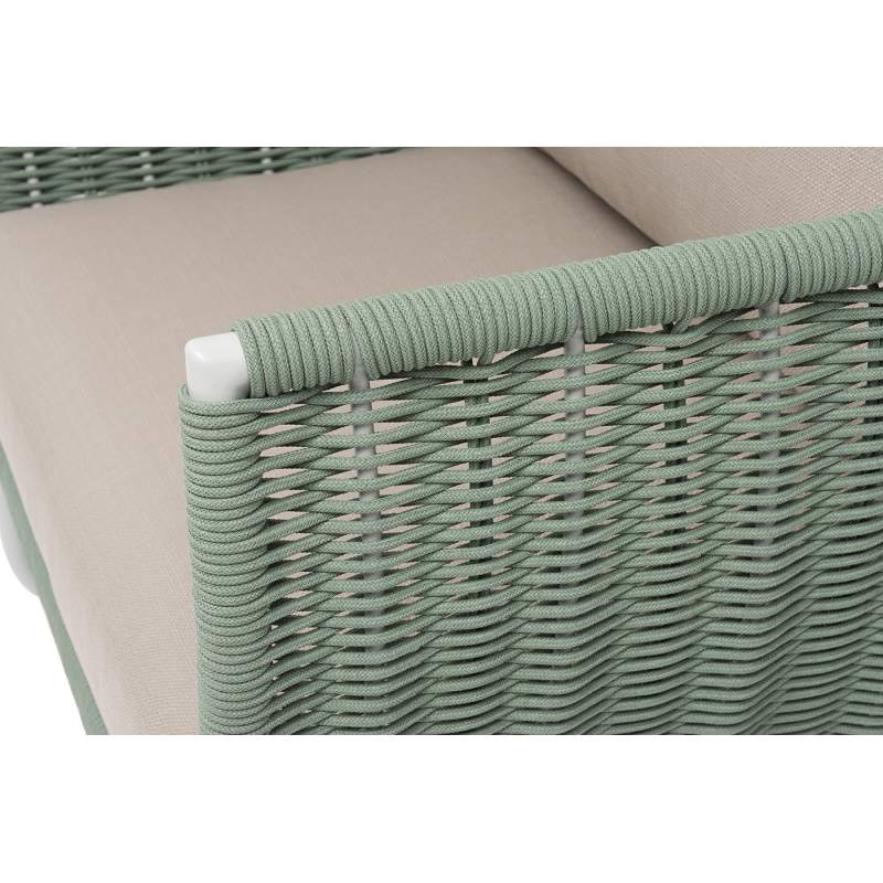 "Фиджи" кресло плетеное из роупа, каркас алюминий светло-серый (RAL7035) муар, роуп зеленый (4204) круглый tex, ткань Mossle бежевая