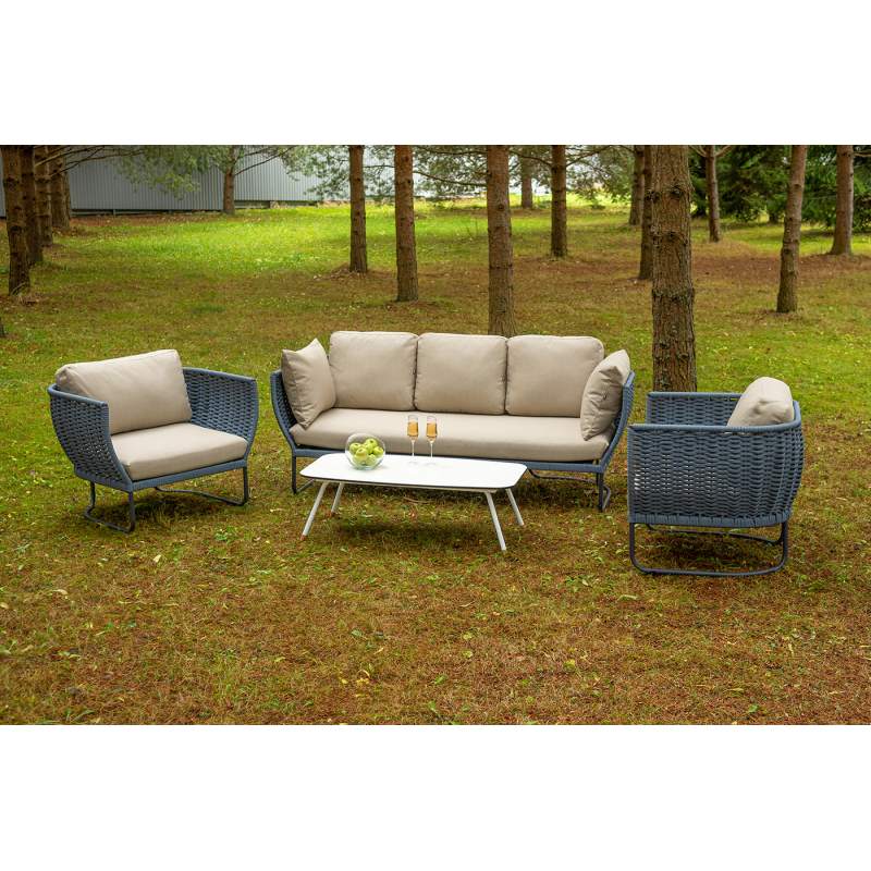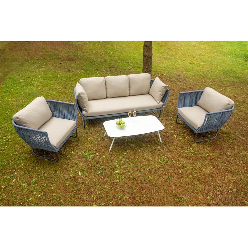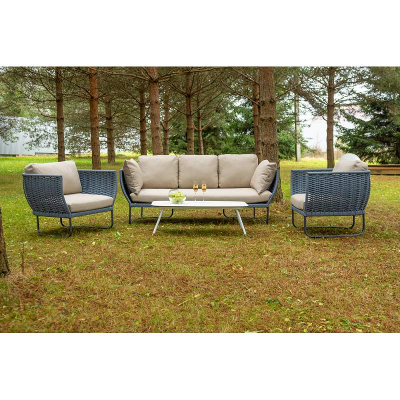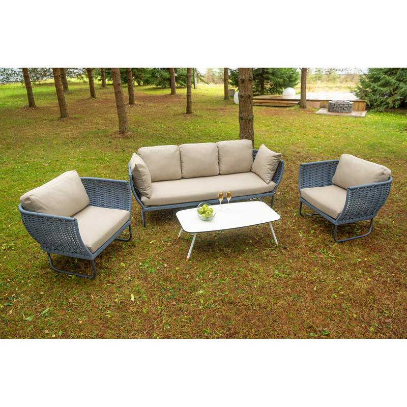 "Фиджи" лаунж-зона 5-местная плетеная из роупа (веревки), каркас алюминиевый темно-серый, роуп синий (KT18-014)