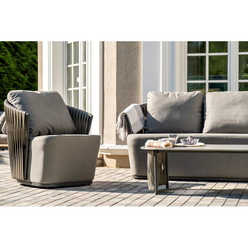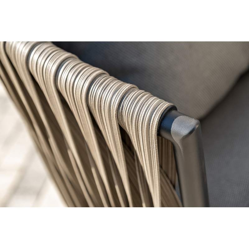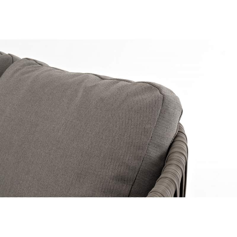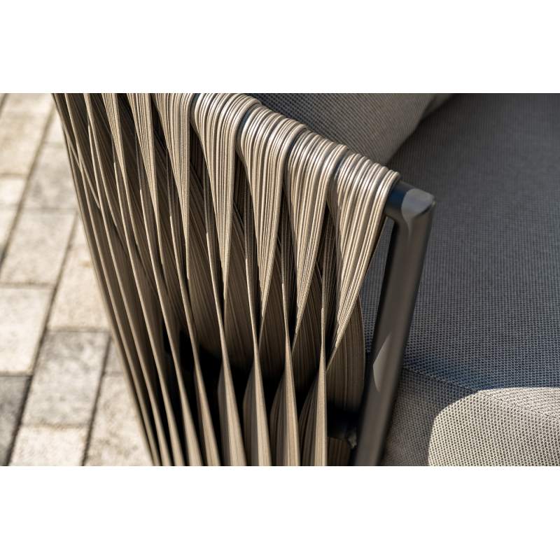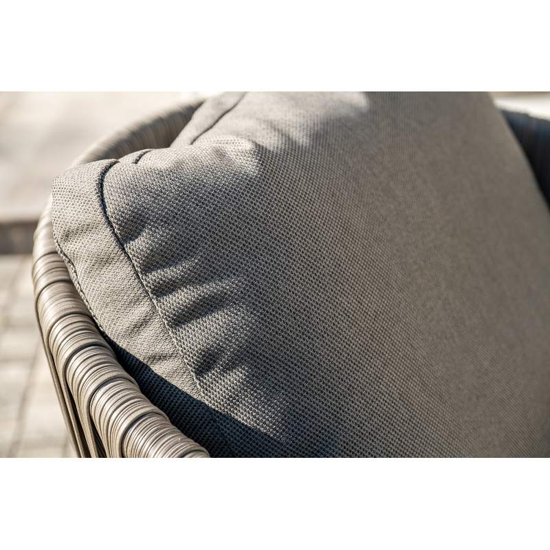 Из алюминия сделан устойчивый каркас мебели. Ее поверхность дополнена искусственным ротангом, из которого сделано ручное плетение - 50×3 мм, цвет графит.