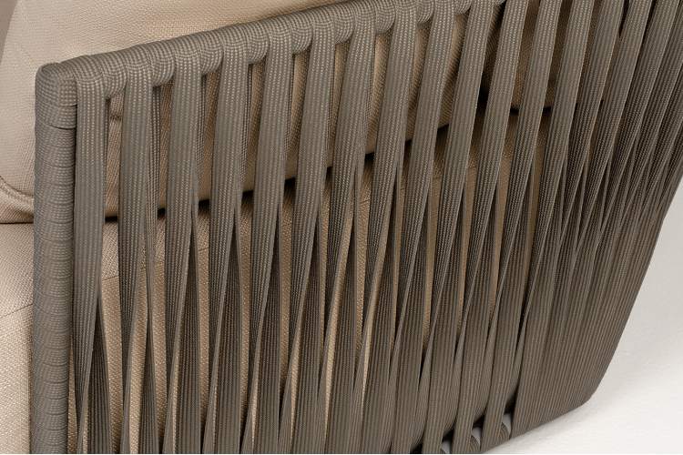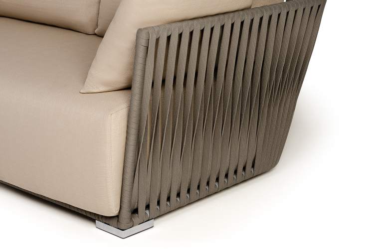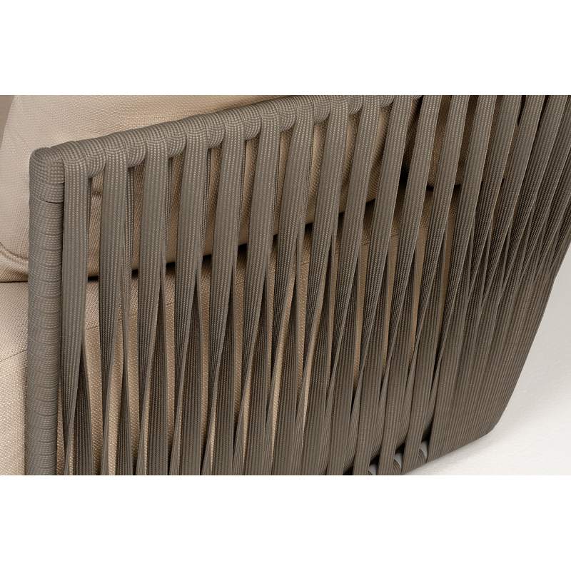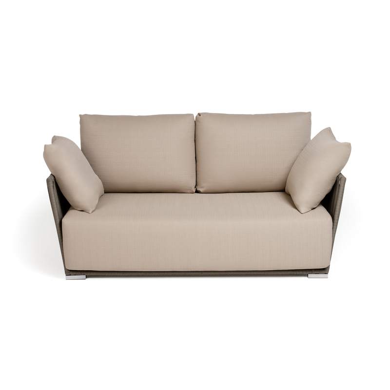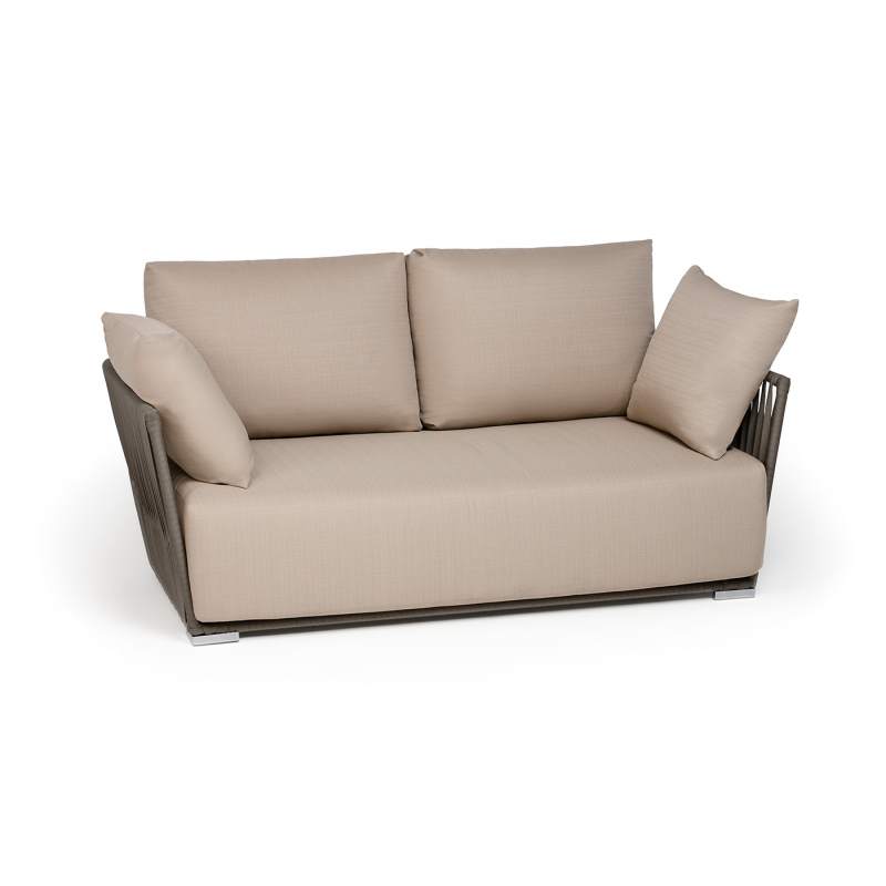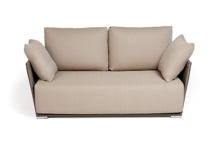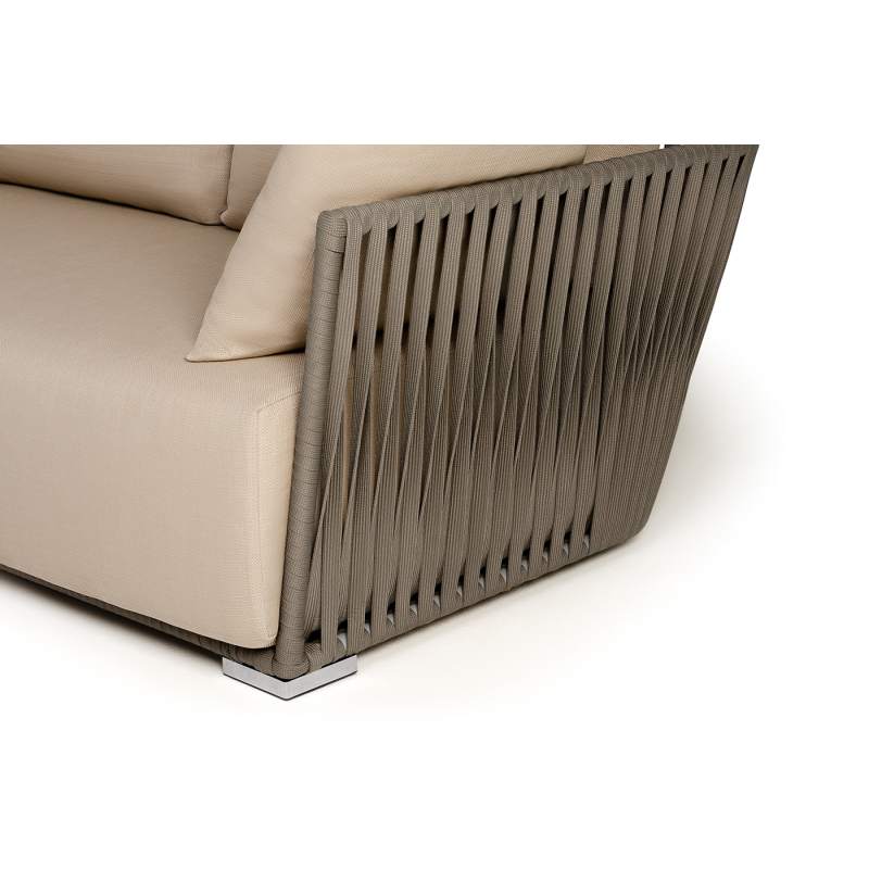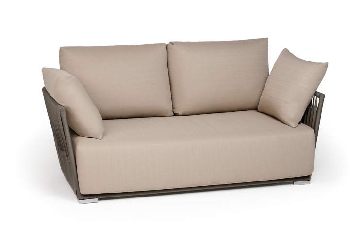"Форли" диван 2-местный плетеный из роупа, каркас алюминий светло-серый (RAL7035) муар, роуп серо-коричневый 23мм, ткань Mossle бежевая