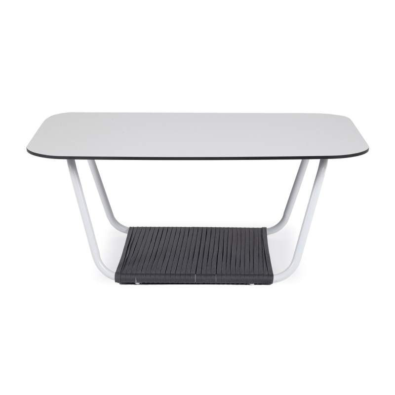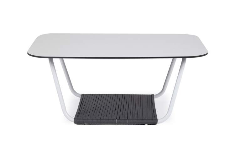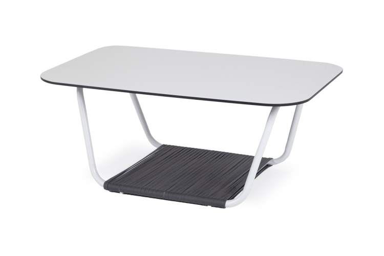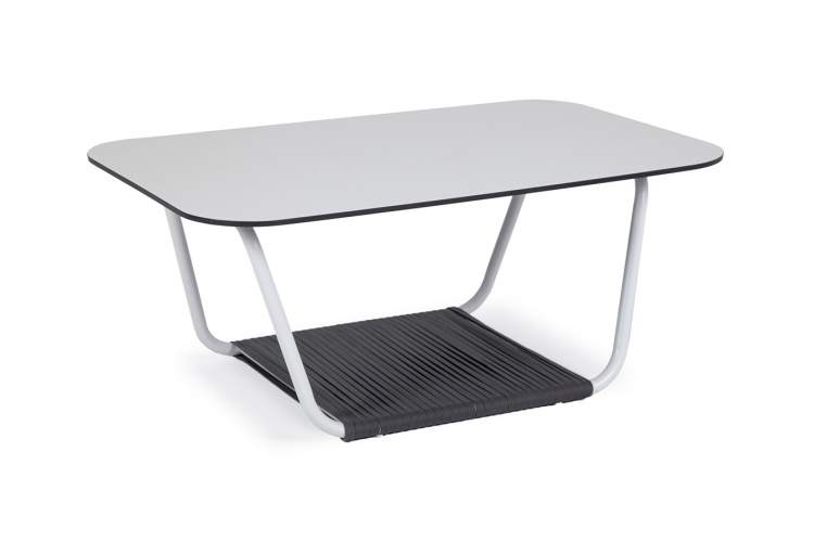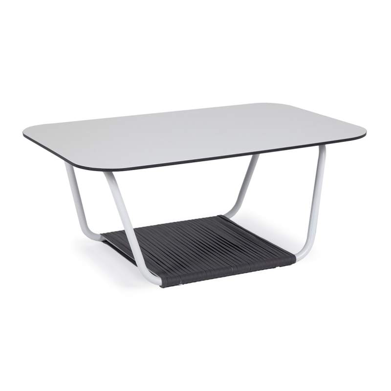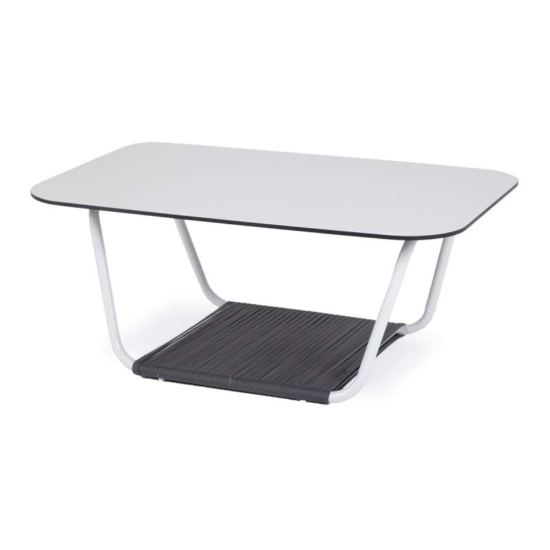 "Гранада" журнальный стол 90х60см из HPL, цвет "молочный", каркас белый муар, роуп темно-серый круглый