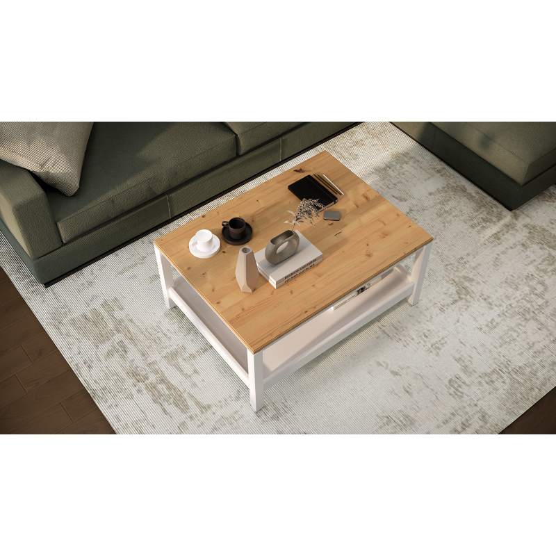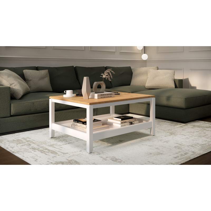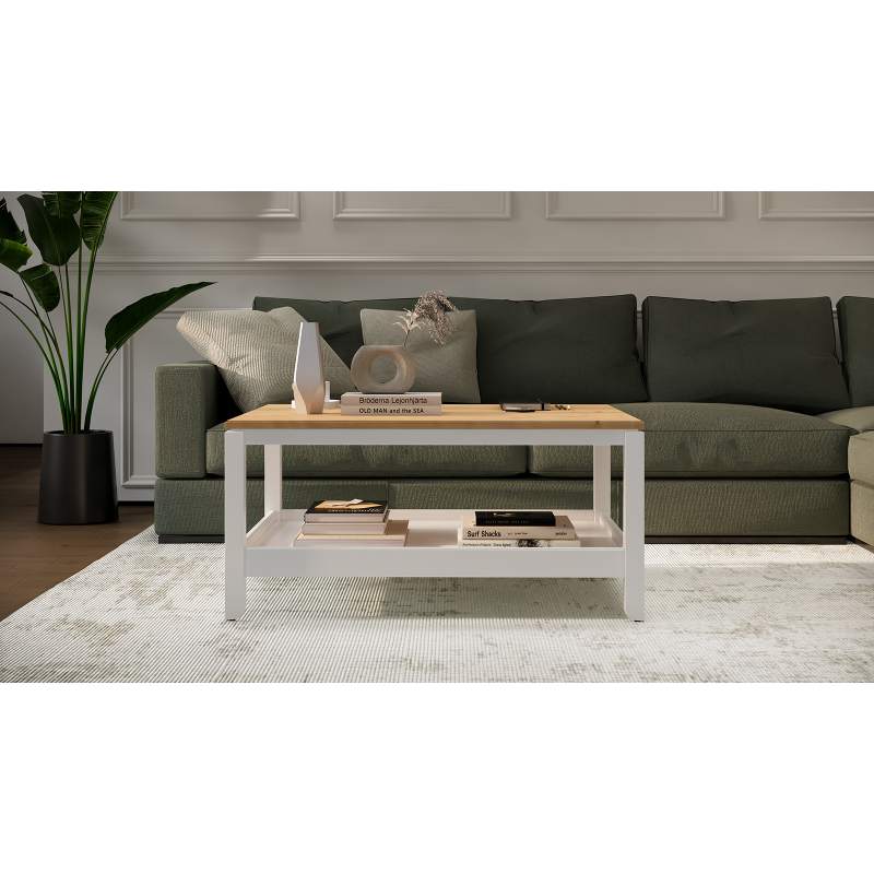 Журнальный стол КОДЗУВ 100x75 Белый/Светло-коричневый