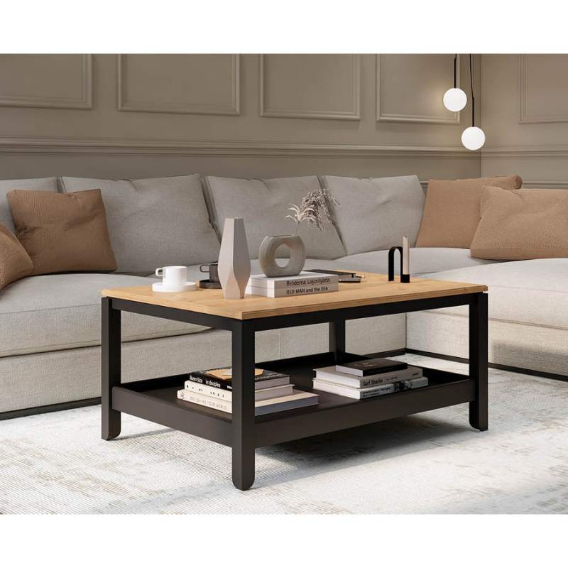 Просторная столешница и дополнительная полка идеально подходят для хранения книг, журналов и декора.