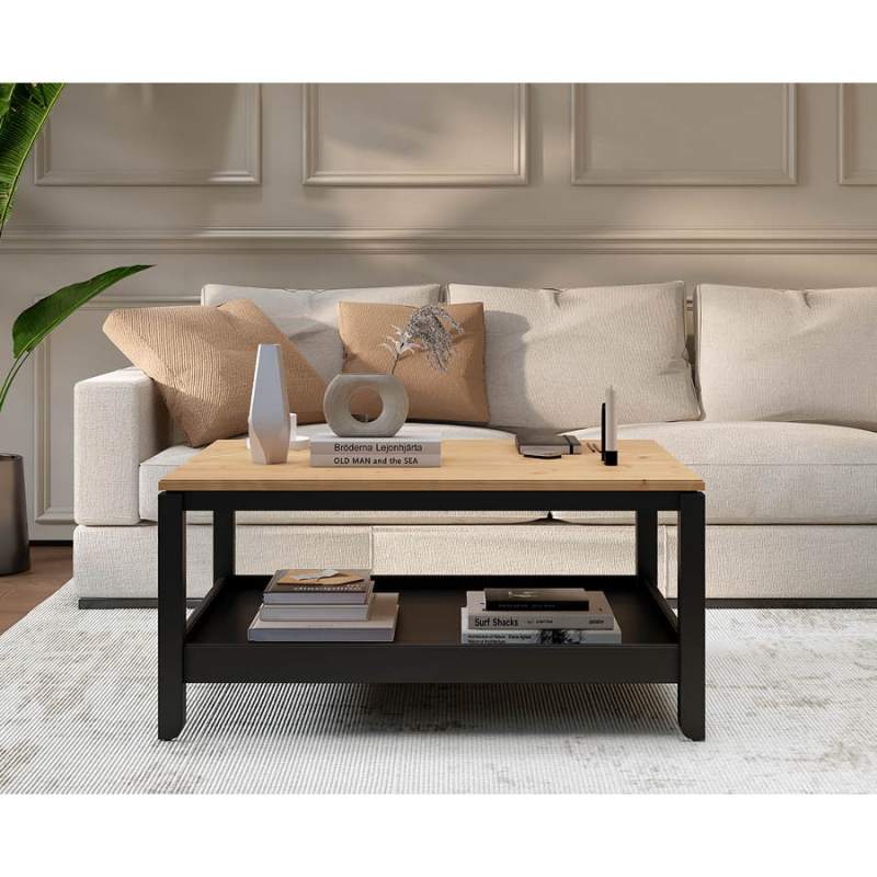 Журнальный стол КОДЗУВ 100x75 Черный/Светло-коричневый
