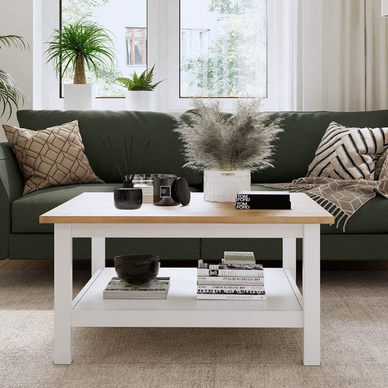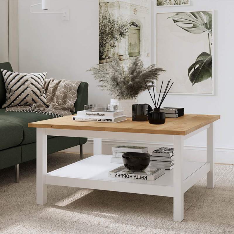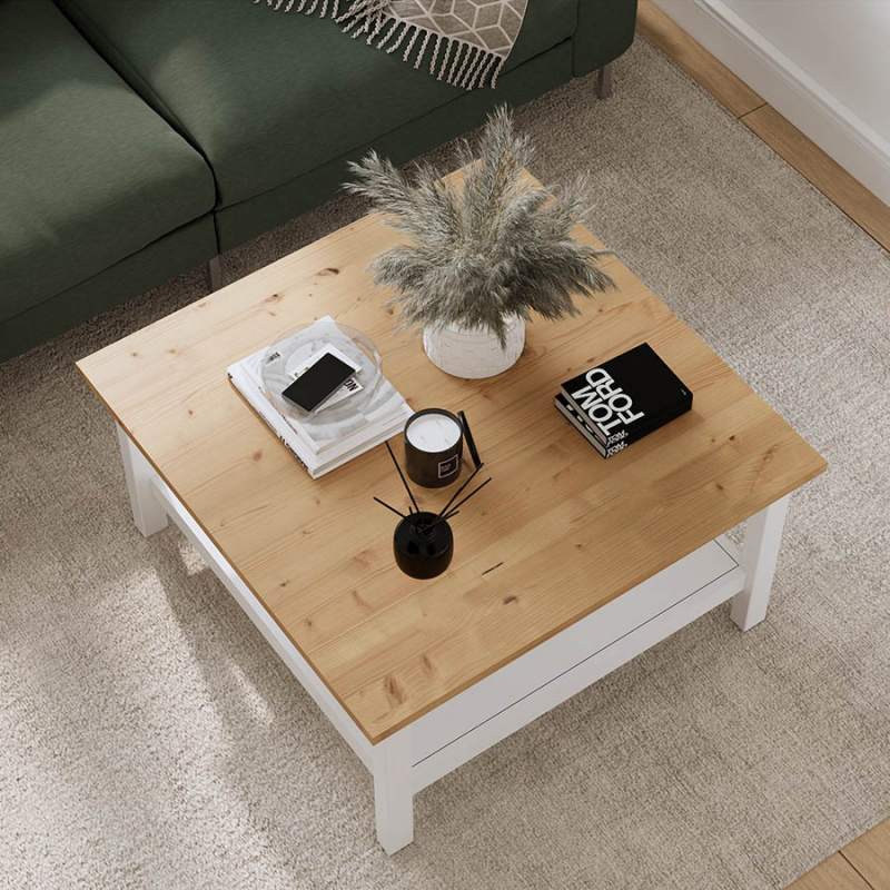 Журнальный стол КЫМОР 90х90 Белый/Светло-коричневый