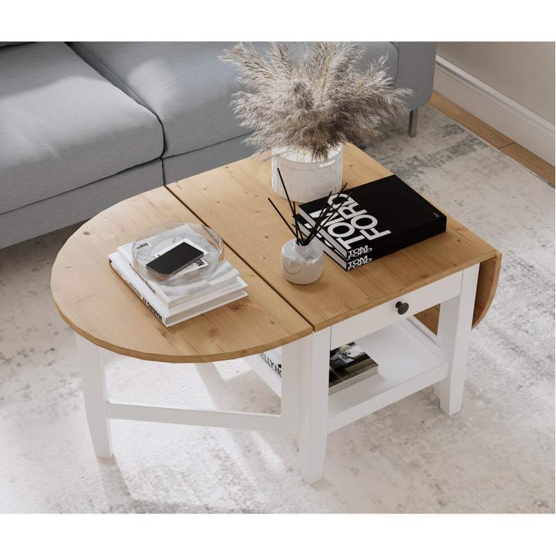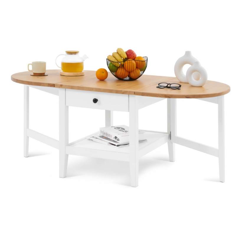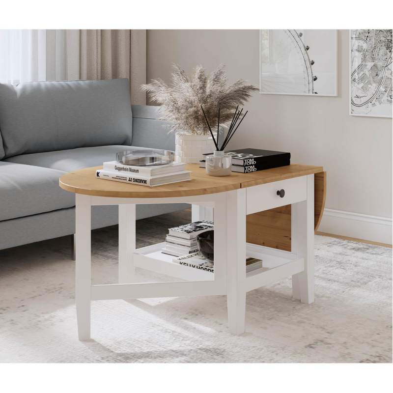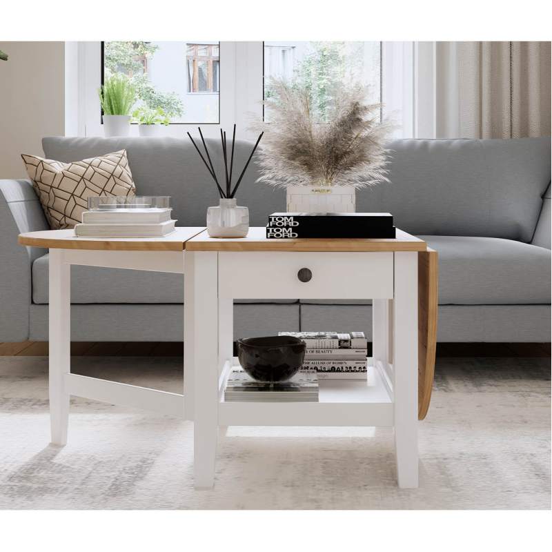 Журнальный стол ВУХТЫМ с ящиком 140х65 Белый/Светло-коричневый