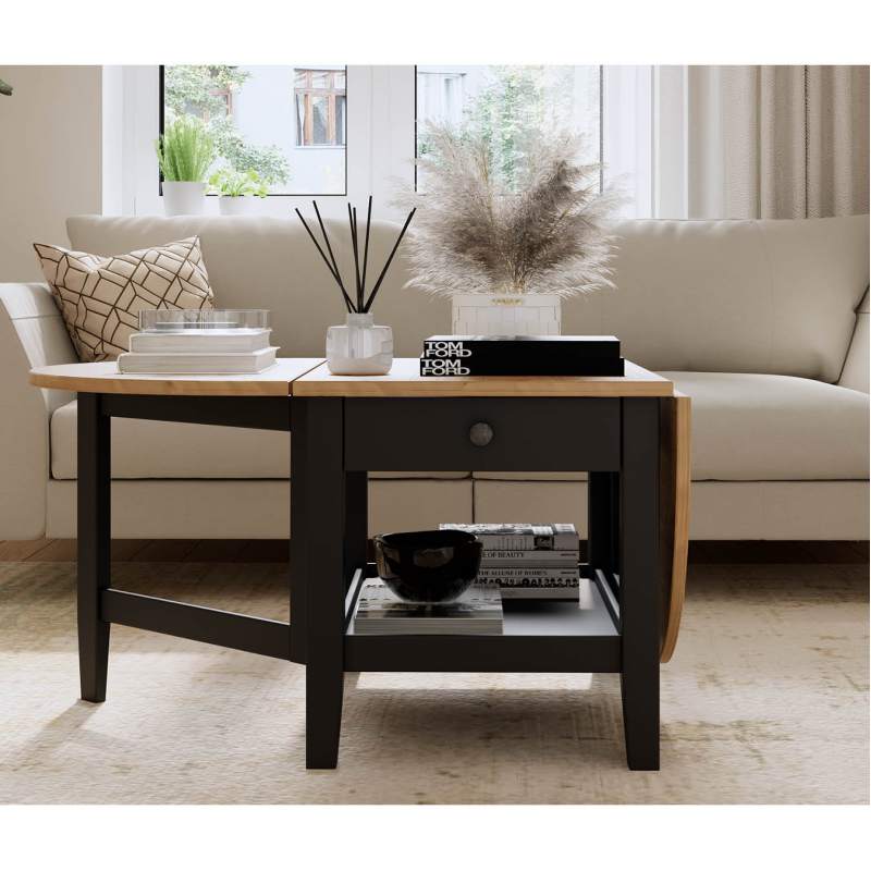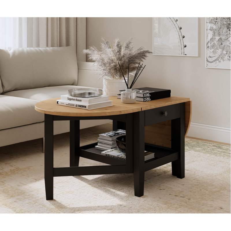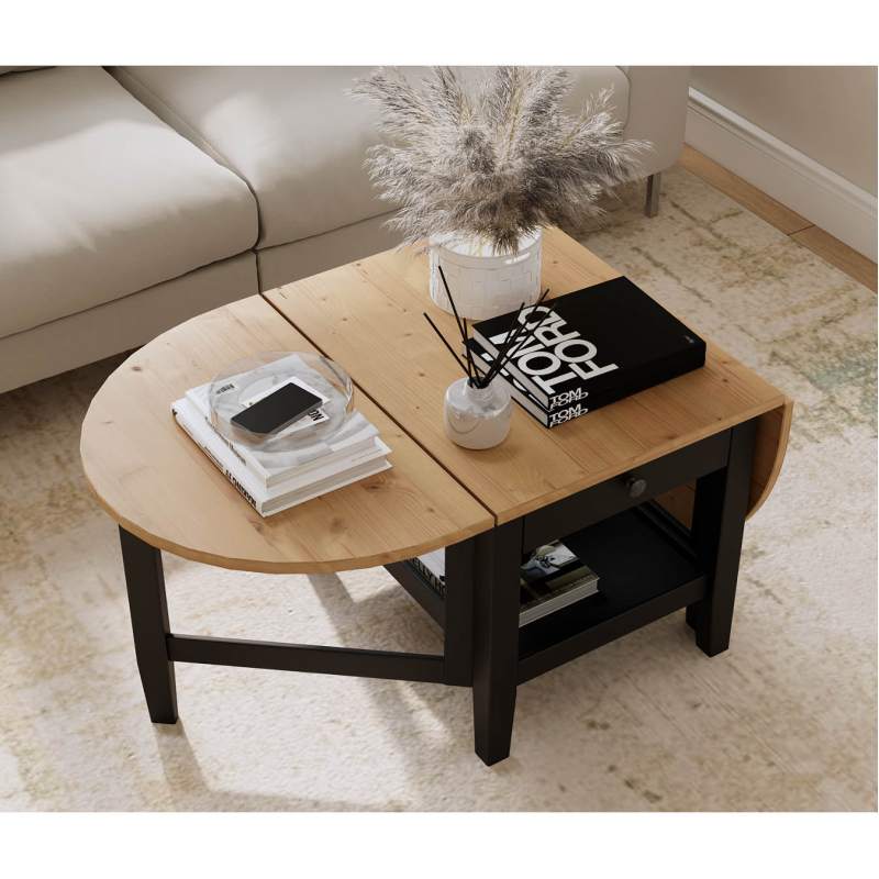 Журнальный стол ВУХТЫМ с ящиком 140х65 Черный/Светло-коричневый