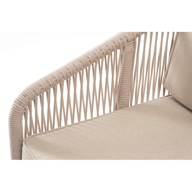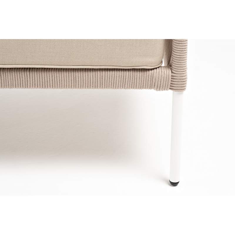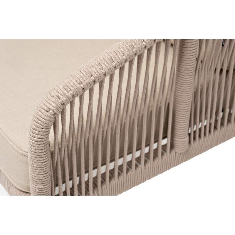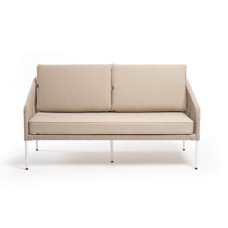 "Канны" диван 2-местный плетеный из роупа, каркас алюминий белый муар, роуп бежевый круглый, ткань бежевая 15052