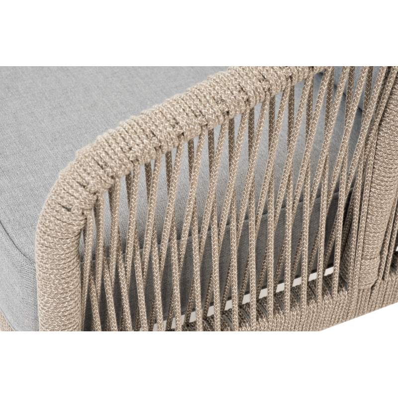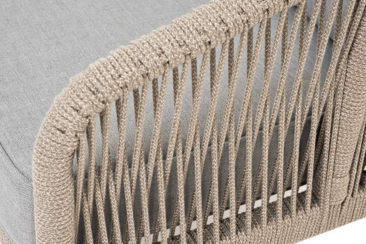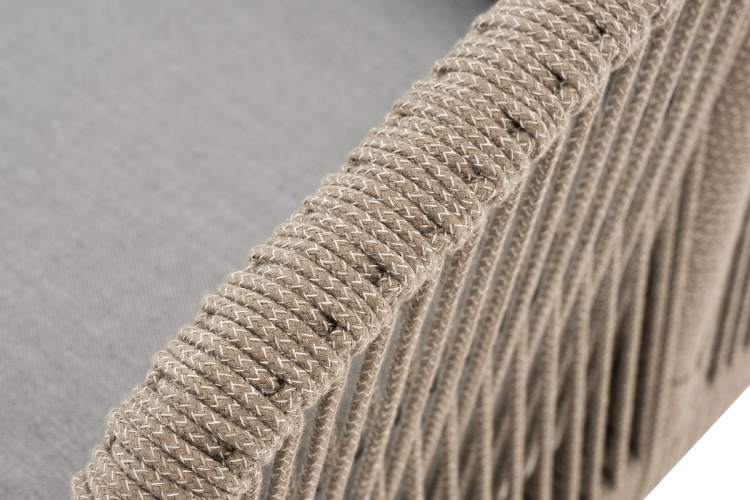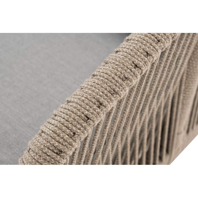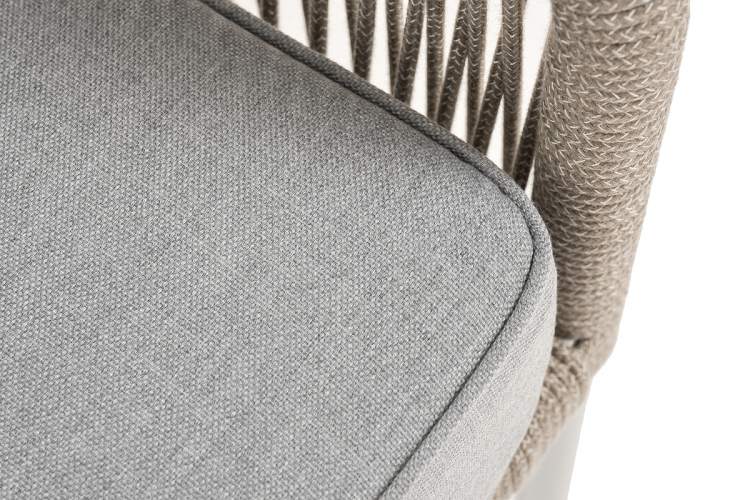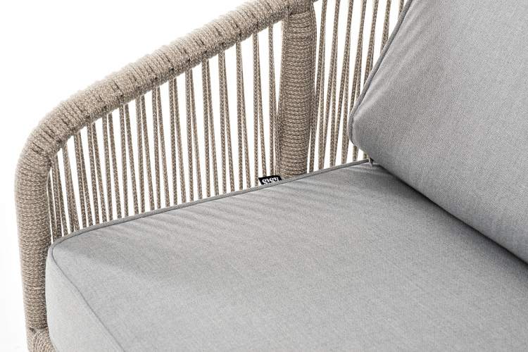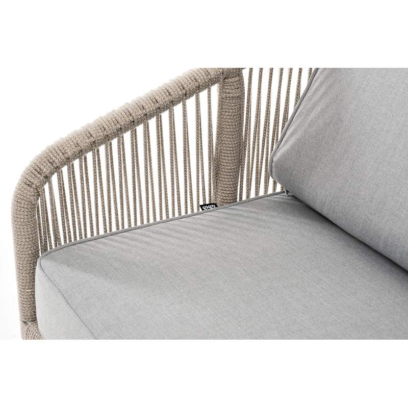 "Канны" диван 2-местный плетеный из роупа, каркас алюминий светло-серый (RAL7035) шагрень, роуп серый меланж круглый, ткань серая 017
