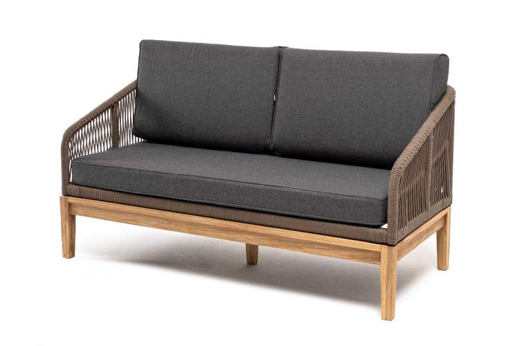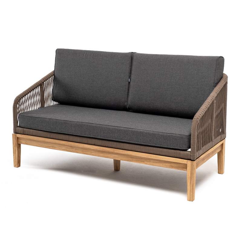 "Канны" диван 2-местный плетеный из роупа, основание дуб, роуп коричневый круглый, ткань темно-серая 027
